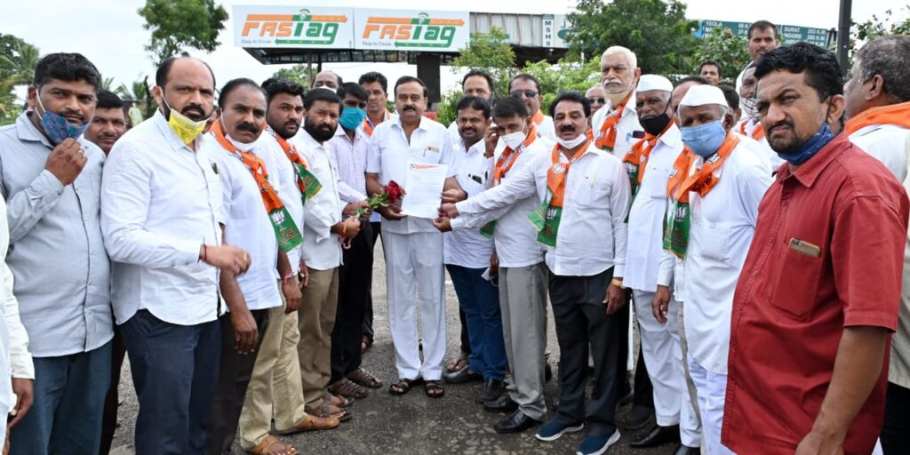 कोपरगांव तालुका हददीतील नगर मनमाड महामार्गाची पावसामुळे दुरावस्था झाली, परिणामी अपघातांचे प्रमाण वाढुन निरपराध व्यक्तींचे बळी मोठया प्रमाणांत जात आहे. दुचाकी, चारचाकी वाहनधारकांना त्याचा त्रास होवुन अनेकांना पाठदुखी, कंबरदुखीचे आजार जडले आहेत. तर अनेकांचे हाय पाय मोडुन ते कायमचे जायबंदी झाले आहेत.श्री. साहेबराव रोहोम पुढे म्हणाले की, भाजपाच्या प्रदेश सचिव स्नेहलता कोल्हे यांनी याबाबत अनेकवेळा जागतिक बँक प्रकल्प विभागाकडे पाठपुरावा करून सार्वजनिक बांधकाम मंत्री यांच्याकडे रस्ता दुरूस्तीची मागणी केली आहे. रस्त्या या टोल वसुलीची जबाबदारी नागपुरच्या विश्वराज इन्फ्रास्ट्रक्चर कंपनीकडे आहे त्यांनाही अनेकवेळा निवेदने दिली पण संबंधीत अधिकारी थातुरमातुर मुरूम टाकुन खडडे बुजवितात त्यातुन अपघातांचे प्रमाण वाढुन असंख्य दुचाकीस्वराचे डोळे कायमचे निकामी झाले आहेत. श्री. विश्वासराव महाले यांनी याबाबतची सर्व वस्तुस्थिती अभियंते शांतीलाल शिंदे यांना सांगितली. प्रवाशांच्या व पंचक्रोशीतील रहिवासीयांच्या तीव्र भावना असुन या महामार्गावरील खडडे पकक्या खडीने न बुजविल्यास १५ ऑक्टोंबर २०२१ रोजी येवला टोलनाका बंद पाडू यातुन होणा-या नुकसानीची जबाबदारी सर्वस्वी कंपनीची राहिल असा इशारा दिला. शेवटी संचालक प्रदिप नवले यांनी आभार मानले. ईस्माईल शहा यांनी निवेदन स्विकारले.कोपरगांव तालुका हद्दीतील नगर मनमाड महामार्गावरील खड्डे त्वरीत न बुजविल्यास १५ ऑक्टोबर पासुन येवला टोल नाका बंद पाडु या आशयाचे निवेदन भाजपाचे तालुकाध्यक्ष साहेबराव रोहोम यांनी बुधवारी दिले. याप्रसंगी विश्वासराव महाले, संचालक प्रदिप नवले, भास्करराव भिंगारे आदि उपस्थित होते.