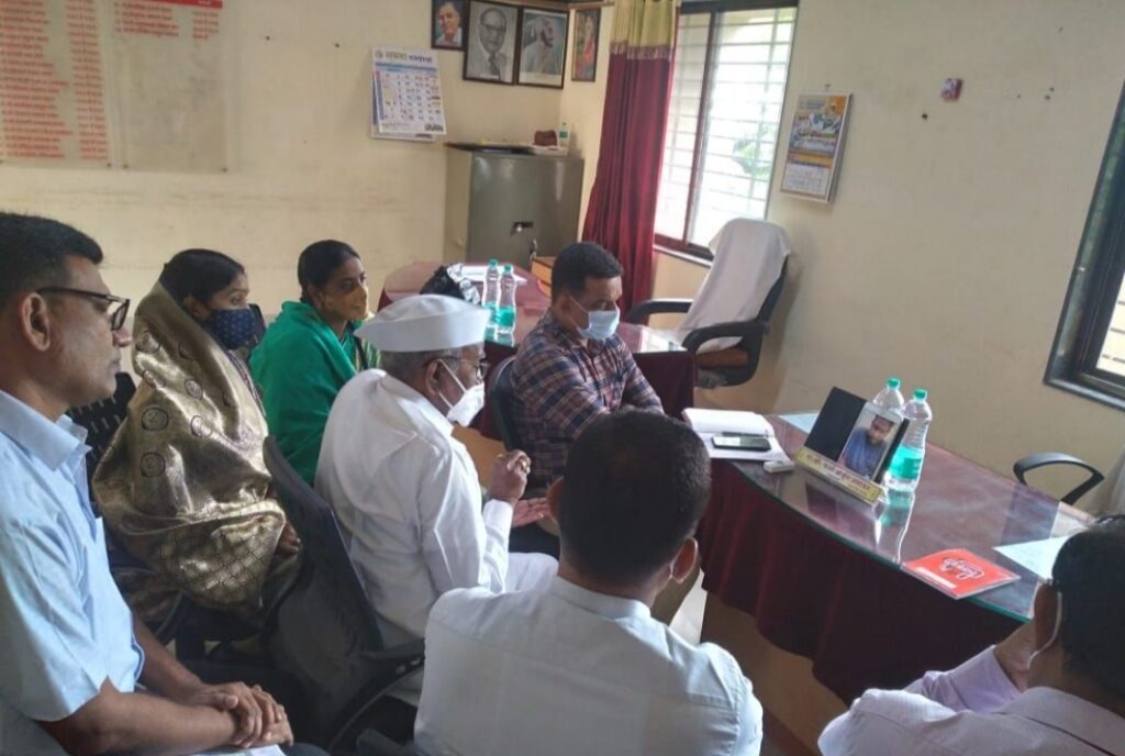 सध्या कोरोनावर उपचार घेत असलेल्या आ. आशुतोष काळे यांनी जबाबदारीला प्राधान्य देवून नुकतीच पंचायत समिती पदाधिकारी व अधिकाऱ्यांची ऑनलाईन पद्धतीने बैठक घेत त्यांच्याशी संवाद साधत विविध विषयांवर संवाद साधून मार्गदर्शन केले. या ऑनलाईन बैठकीवेळी सभापती सौ. पौर्णिमा जगधने, उपसभापती अर्जुनराव काळे, कारभारी आगवण, गटविकास अधिकारी सचिन सुर्यवंशी, तालुका आरोग्य अधिकारी डॉ. विलास घोलप, उपअभियंता उत्तमराव पवार, शिक्षणाधिकारी शबाना शेख आदी उपस्थित होते.यावेळी मार्गदर्शन करतांना आ. आशुतोष काळे म्हणाले की, राष्ट्रपिता महात्मा गांधी यांच्या जयंतीनिमित्त ग्रामपंचायतीमार्फत तालुक्यातील सर्व गावांमध्ये स्वच्छता सप्ताह राबवा. ४ ऑक्टोबर पासून शाळा सुरू करण्याचा निर्णय घेतला असून त्या पार्श्वभूमीवर पाचवी ते बारावी व आठवी ते बारावीच्या वर्गांचा आढावा घ्यावा. शुक्रवार (दि.०१)रोजी दहेगाव बोलका येथे अंगावर वीज पडून ११ वर्षीय विद्यार्थ्याचा दुर्दैवी मृत्यु झाला आहे. या विद्यार्थ्याचा विमा प्रस्ताव तातडीने तयार करून संबंधित विभागाकडे पाठवा. मागील काही दिवसांपासून सर्वत्र मोठ्या प्रमाणावर अतिवृष्टी झाली होत असून या अतिवृष्टीमुळे जिल्हा परिषद अंतर्गत दुरुस्ती केलेल्या रस्त्यांचे नुकसान झाले आहे. या सर्व रस्त्यांची पाहणी करून देखभाल कालावधी कराराप्रमाणे सदर रस्त्यांची संबंधितांकडून ठेकेदाराकडून दुरुस्ती करून घ्यावी अशा अनेक सूचना आमदार आशुतोष काळे यांनी यावेळी ऑनलाईन बैठकीत सहभागी झालेल्या पंचायत समिती पदाधिकारी व अधिकाऱ्यांना दिल्या. आ. आशुतोष काळे यांनी घेतलेल्या ऑनलाईन बैठकीत सहभागी झालेले पंचायत समिती पदाधिकारी व अधिकारी.