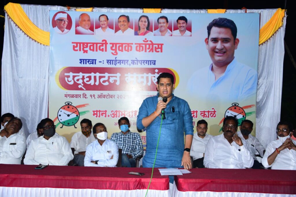 कोपरगाव शहरातील साईनगर येथे राष्ट्रवादी काँग्रेस पक्षाच्या शाखा उद्घाटन प्रसंगी कार्यकर्त्यांना मार्गदर्शन करतांना आ. आशुतोष काळे.