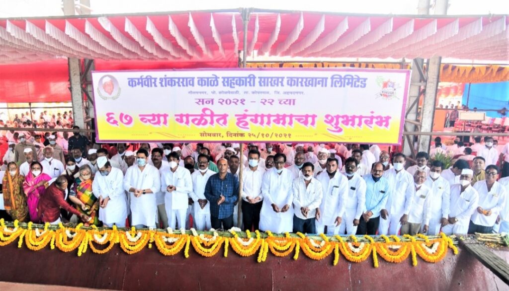 याप्रसंगी जेष्ठ नेते छबुराव आव्हाड, एम. टी. रोहमारे, कारभारी आगवण, नारायण मांजरे, कारखान्याचे उपाध्यक्ष सुधाकर रोहोम, सर्व संचालकमंडळ, सभापती सौ. पोर्णिमा जगधने, उपसभापती अर्जुनराव काळे, राष्ट्रवादीचे तालुकाध्यक्ष माधवराव खिलारी, संभाजीराव काळे, कारखान्याचेजनरल मॅनेजर सुनील कोल्हे, आसवणी विभागाचे जनरल मॅनेजर ज्ञानेश्वर आभाळे, सेक्रेटरी बाबा सय्यद, असि.सेक्रेटरी एस. डी. शिरसाठ, वर्क्स मॅनेजरदौलतराव चव्हाण, चीफ इंजिनिअर निवृत्ती गांगुर्डे, चिफ केमिस्ट सुर्यकांतताकवणे, चिफ अकौंटंट सोमनाथ बोरनारे, शेतकी अधिकारी कैलास कापसे, उद्योग समुहातील सर्व संस्थांचे चेअरमन, व्हा. चेअरमन, संचालक, पंचायत समितीचे उपसभापती, सर्व सदस्य, राष्ट्रवादी कॉंग्रेस पक्षाचे सर्व जिल्हा परिषद सदस्य, कोपरगाव नगरपरिषदेचे राष्ट्रवादी कॉंग्रेस पक्षाचे सर्व नगरसेवक व पदाधिकाऱ्यांसह उद्योग समुहातील सर्व संलग्न संस्थांचे चेअरमन, व्हा.चेअरमन, संचालक,सभासद, शेतकरी व कामगार वकार्यकर्ते उपस्थित होते. कार्यक्रमाचेसूत्रसंचालन संचालक अरुण चंद्रे यांनीकेले तर उपाध्यक्ष सुधाकर रोहोम यांनीउपस्थितांचे आभार मानले राज्यात महाविकास आघाडी सरकार सथापन झाल्यापासून नेहमीच शेतकऱ्यांच्या पाठीशी खंबीरपणेउभे राहिले आहे. कोरोनाचे संकट व चार–चार चक्रीवादळांच्या व अतिवृष्टी, महापूर अशा आपत्तीपुढे न डगमगता नुकसानीची भरपाई राज्यसरकार देत आहे. माजी आमदार अशोकराव काळे यांनी विरोधी पक्षाचे आमदार असतांना देखील मोठ्या प्रमाणात मतदार संघासाठी निधी आणला आहे मात्र त्यांनी कधी त्याची प्रसिद्धी केली नाही व मला देखील प्रसिद्धीची हाव नाही. मात्र काही काम न करता देखील प्रसिद्धी करीत असल्यामुळे प्रसिद्धी करावी लागते मात्र सवंग लोकप्रियतेसाठी कधीही प्रसिद्धी करणार नाही. दोन वर्षातील दीड वर्ष कोरोनाच्या संकटाचा मुकाबला करण्यात गेले. विकासाची सर्व कामे एकाच वेळी होणार नसली तरी टप्याटप्याने सर्वच विकासकामे मार्गी लावणार आहे. ग्रामीण रुग्णालयाला १०० बेडच्या उपजिल्हा रुग्णालयाची मंजुरी मिळविली असून ऑक्सिजन प्रकल्पाची देखील उभारणी केली आहे. कोपरगाव शहरातील ५ नंबर साठवण तलाव, गोदावरी कालव्यांच्या दुरुस्तीचा प्रश्न, विजेचे प्रश्न तसेच अनेक रस्त्यांची कामे पूर्ण झाली असून काही रस्त्यांची कामे प्रगतीपथावर आहेत. अनके रस्त्यांचे प्रस्ताव शासनदरबारी दाखल केलेले असून आजपर्यंत प्रतिकूल परिस्थितीत रस्त्यांसाठी ९५ कोटी रुपयांचा निधी मिळविला आहे. – आ. आशुतोष काळे.
