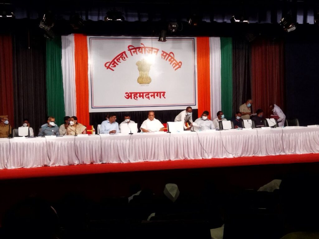 आमदार आशुतोष काळे यांच्या प्रयत्नांतून मागील वर्षी श्री.क्षेत्र मयुरेश्वर’ देवस्थान व कोकमठाण येथील श्री.लक्ष्मीमाता मंदिर देवस्थानास तीर्थक्षेत्र ‘क’ वर्ग दर्जा मंजूर करण्यात आला आहे. त्याप्रमाणे श्री. जगदंबा माता मंदिर देवस्थानास ‘क’ वर्ग दर्जा देण्यात आला आहे, त्यामुळे या मंदिराकडे जाणारे रस्ते, सुशोभिकरण तसेच परिसराचा सर्वांगीण विकास होण्यास मदत होणार आहे.त्यामुळे ब्राम्हणगाव व पंचक्रोशीतील नागरिकांनी तसेच तिळवणी येथे प्राथमिक आरोग्य केंद्र मंजूर केल्यामुळे तिळवणी व पूर्वभागातील नागरिकांनी आरोग्याचा प्रश्न मार्गी लावल्याबद्दल आ. आशुतोष काळे याचे आभार मानले आहे. या बैठकीसाठी ऊर्जा राज्यमंत्री ना.प्राजक्तदादा तनपुरे, खा. सदाशिव लोखंडे, जिल्हा परिषद अध्यक्षा ना.राजश्रीताई घुले,उपाध्यक्ष प्रताप शेळके, आ.रोहित पवार, आ. लहू कानडे, आ. मोनिका राजळे, आ. निलेश लंके, जिल्हाधिकारी डॉ.राजेंद्र भोसले जिल्हा पोलीस अधीक्षक मनोज पाटील,जि.प. मुख्य कार्यकारी राजेंद्र क्षीरसागर, अति. पोलीस अधीक्षक सौरभ अग्रवाल आदी उपस्थित होते. जिल्हा नियोजन समितीत बैठकीत राज्याचे ग्रामविकास मंत्री तथा पालकमंत्री ना.हसन मुश्रीफ यांच्याकडे कोपरगाव विधानसभा मतदार संघातील विविध विकास कामांसाठी निधीची मागणी करतांना आ.आशुतोष काळे.