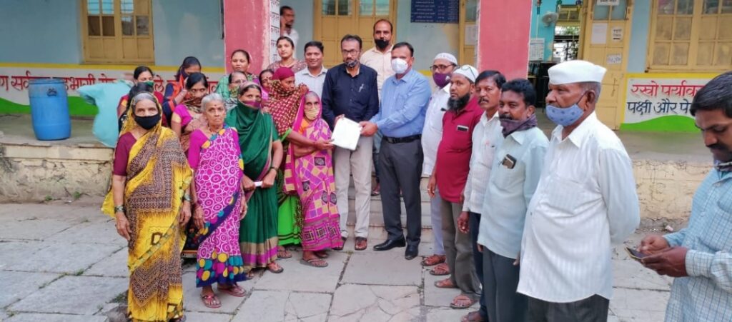 आ. आशुतोष काळे यांच्या मार्गदर्शनाखाली कोपरगाव शहर राष्ट्रवादी कॉंग्रेस पक्षाच्या वतीने कोपरगाव नगरपरिषदेचे मुख्य कार्यकारी अधिकारी शांताराम गोसावी यांना निवेदन देण्यात आले आहे. या निवेदनात असे म्हटले आहे की,लिंभारा मैदान परिसरात पाणी साचून चिखलाचे साम्राज्य पसरत असल्यामुळे नागरिकांच्या आरोग्याला धोका निर्माण झाला आहे. त्यासाठी या परिसरात व श्री स्वामी समर्थ मंदिरामागे पेव्हिंग ब्लॉक बसवावे.तसेच रात्रीच्या वेळी अंधार असल्यामुळे अनेक अडचणींचा नागरिकांना सामोरे जावे लागते. त्यासाठी पथदिव्यांचे विजेचे पोल बसवावे अशी मागणी करण्यात आली आहे. यामध्ये किशोर पगारे घर ते संतोष काजळे घर, गिरीश चव्हाण घर ते श्री स्वामी समर्थ मंदिर भिंत,विनोद ठाकूर घर ते विलास गायकवाड घर,अबीद बागवान घर ते गफूर बागवान घर,निलेश महाले घर ते सोनू भुल्लर घर,न्यायालय भिंत ते सागर आदमाने घर व श्री स्वामी समर्थ मंदिरामागे ब्लॉक बसवून मिळावे. सोनू भुल्लर, संतोष गवूल, निलेश महाले, सागर आदमाने, गिरीश चव्हाण,विलास गायकवाड यांचे घराजवळ पथदिव्यांचे विजेचे पोल बसवावे अशी मागणी दिलेल्या निवेदनात करण्यात आली आहे. याप्रसंगी फकीर कुरेशी,राजेंद्र जोशी ,चांदभाई पठाण,वाल्मिक लाहिरे, संतोष टोरपे, सुभाष ठोंबरे,नितीन पवार, सोनू भुल्लर, सुशीला टोरपे,शकुंतला अष्टेकर, गिरीष चव्हाण, सुरेखा कदम,गंगाबाई खरोटे, रवी भोपे, रेखा मोरे,श्रीकांत पगारे,संगीता जाधव, शकीला बागवान, विलास गायकवाड, शमा भाबी बागवान, ज्योती संधू, संध्या ठाकूर, श्रीमती ठोंबरे आदी उपस्थित होते. सदरच्या मागणीचा सकारात्मकपणे विचार करून पुढील कार्यवाही करू असे आश्वासन मुख्य कार्यकारी अधिकारी शांताराम गोसावी यांनी दिले आहे.लिंभारा मैदान व श्री स्वामी समर्थ मंदिरामागे पेव्हिंग ब्लॉक बसवावे व पथदिव्यांचे विजेचे पोल बसवावे अशा आशयाचे निवेदन देतांना शहर राष्ट्रवादी कॉंग्रेस पक्षाचे पदाधिकारी व ग्रामस्थ.