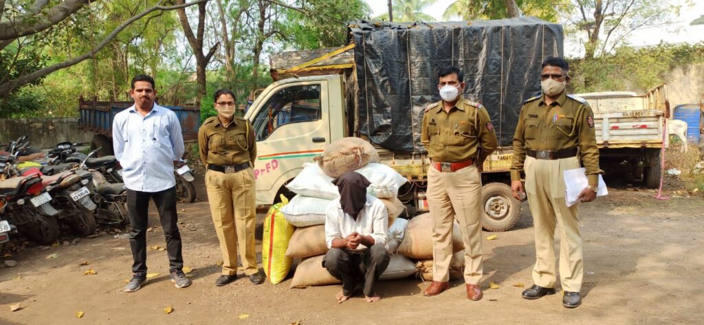 कोपरगाव शहर पोलीस स्टेशन हद्दीतील कृषी उत्पन्न बाजार समिती येथील लिलाव टाटा मधून सोयाबीन ची चोरी करणाऱ्या चोरास कोपरगाव शहर पोलिसांनी १२तासाच्या आत जर बंद करून चोरलेला माल हस्तगत केला ही कामगिरी कोपरगाव शहर पोलीस स्टेशन अधिकारी व अंमलदार यांनी केली आहे कोपरगाव शहर पोलीस स्टेशन गुन्हा नंबर ३५६|२०२१ भाऊ.दा.वि.क ३७९प्रमाणे दि ३\१२\२०२१ रोजी नानासाहेब सोपान रमेश वय 48 वर्षे धंदा सचिव कृषी उत्पन्न बाजार समिती कोपरगाव यांनी फिर्याद दिली की दिनांक ३ \१२\२०१ रोजी सकाळी सहा वाजण्याच्या सुमारास कोणीतरी अज्ञात चोरट्यांनी बाजार समिती मधील लिलाव गोडावून मध्ये ठेवलेल्या दीडशे सोयाबीनच्या गोण्या पैकी तीस हजार रुपये किमतीच्या सहा क्विंटल वजनाच्या बारा सोयाबीनच्या गोण्या प्रत्येकी पन्नास किलो वजनाच्या गोण्या ह्या चोरून नेले होत्या अशी फिर्याद देण्यात आली होती सदर गुन्ह्याचे गांभीर्य ओळखून तपासाचे तात्काळ चक्र फिरून पोलीस निरीक्षक देसले साहेब यांच्या मार्गदर्शनाखाली पोहकॅ/१७७७ तिकोने ,पोना८६५ दारकुंडे पोहाॅ २५२४ ढाकणे यांनी तात्काळ कृषी बाजार समिती येथील सीसी टीव्ही फुटेज चेक करून सदर गुन्ह्यातील आरोपी याने वापरलेले छोटा हत्ती मालवाहतूक टेम्पो याचा शोध घेऊन यातील आरोपी ज्ञानेश्वर दादा सोनवणे वय ४४ वर्ष राहणार धारणगाव तालुका कोपरगाव येथे जाऊन आरोपी यास मालवाहतूक टेम्पो सह ताब्यात घेऊन त्याने चोरलेल्या सोयाबीनच्या तीस हजार रुपये किमतीच्या सहा क्विंटल वजनाच्या १२सोयाबीनच्या गोण्या प्रत्येकी पन्नास किलो वजनाच्या गोण्या व २ ,५०.००| रूपये किमतीचा टाटा कंपनीचा छोटा हत्ती मालवाहतूक टेम्पो असा एकूण २,८०,००\ किमतीचा मुद्देमाल त्याच्याकडून हस्तगत करून सदर गुन्हा बारा तासाच्या आत उघडकीस आणून आरोपी यास मुद्देमालासह अटक केली आहे सदरचे कौतुकास्पद कामगिरी ही मान्य पोलीस अधिकारी मनोज पाटील दिपाली काळे अप्पर पोलीस अधिकारी श्रीरामपूर संजय सातव उपविभागीय पोलिस अधिकारी सो शिर्डी विभाग शिर्डी यांचे मार्गदर्शनाखाली पोलीस निरीक्षक पोहेकॉ १७७ तिकोने पोना ८५६दारकुंडे पोकाॅ\२५२४ ढाकणे कोपरगाव शहर पोलीस स्टेशन यांनी कामगिरी केली आहे.