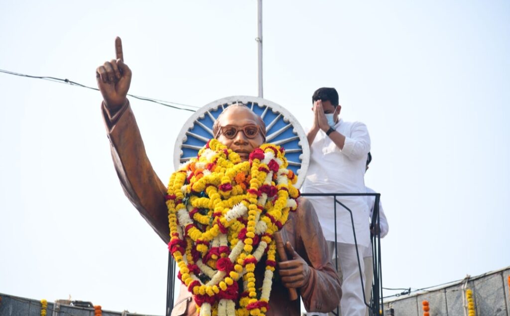 भारतीय राज्यघटनेचे शिल्पकार भारतरत्न डॉ. बाबासाहेब आंबेडकर यांच्या महापरिनिर्वाण दिनानिमित्त कोपरगाव येथील डॉ. बाबासाहेब आंबेडकर यांच्या पुतळ्यास श्री साईबाबा संस्थानचे अध्यक्ष आमदार आशुतोष काळे यांनी अभिवादन केले याप्रसंगी ते बोलत होते.मागील वर्षी कोरोना संकटाच्या पार्श्वभूमीवर संसर्ग रोखण्यासाठीमहापरिनिर्वाणदिनी तमाम अनुयायांनी व भीमसैनिकांनी भारतीय राज्यघटनेचे शिल्पकार भारतरत्न डॉ. बाबासाहेब आंबेडकर यांना आपापल्या घरातून अभिवादन केले होते. मात्र काही महिन्यांपासून कोरोनाची दुसरी लाट ओसरल्यामुळे जनजीवन पूर्वपदावर आले आहे. त्यामुळे सर्व कार्यक्रमांना परवानगी देण्यात आली आहे. मात्र कोरोनाचा नवा व्हेरीयंट असलेल्या ओमायक्रॉनचे राज्यात काही रुग्ण सापडल्यामुळे योग्य ती काळजी घेवून असंख्य भीमसैनिक व राष्ट्रावादी काँग्रेस पक्षाच्या असंख्य कार्यकर्त्यांसमवेत श्री साईबाबा संस्थानचे अध्यक्ष आमदार आशुतोष काळे यांनी भारतीय राज्यघटनेचे शिल्पकार भारतरत्न डॉ. बाबासाहेब आंबेडकर यांना महापरिनिर्वाण दिनानिमित्त अभिवादन केले.याप्रसंगी कर्मवीर शंकरराव काळे कारखान्याचे उपाध्यक्ष सुधाकर रोहोम,राष्ट्रवादी काँग्रेसचे शहराध्यक्ष सुनील गंगूले,नगरसेवक मंदार पहाडे, संदीप पगारे, अजीज शेख, राजेंद्र वाकचौरे, हाजीमेहमूद सय्यद,गौतम बँकेचे संचालक सुनील शिलेदार, युवक शहराध्यक्ष नवाज कुरेशी, रमेश गवळी, दिनकर खरे, फकीर कुरेशी, प्रकाश दुशिंग, रावसाहेब साठे, राजेंद्र खैरनार, वाल्मिक लहिरे, आकाश डागा, संतोष बारसे, मनोज नरोडे, नितीन शिंदे,बाळासाहेब पवार, किरण बागुल, शंकर घोडेराव, विजय त्रिभुवन, राजु विघे, राहुल खंडिझोड, मनोज शिंदे, संजय दुशिंग, रोशनशेजवळ, लक्ष्मण सताळे, सौ. मायादेवी खरे, मीराताई साळवे,कु. दिप्ती रणशूर आदींसहभीमसैनिक व राष्ट्रवादी काँग्रेस पक्षाचेकार्यकर्ते मोठ्या संख्येने उपस्थित होते.