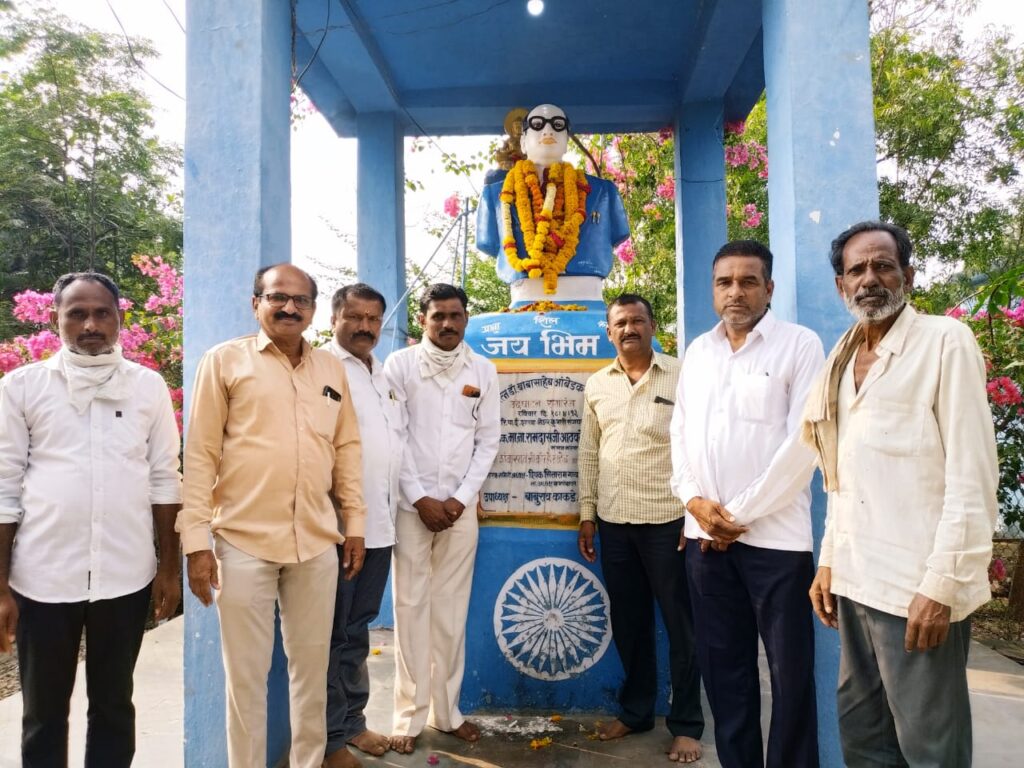 कोपरगाव तालुक्यातील जेऊर कुंभारी गावातील आमदार आशुतोष काळे मित्र मंडळाच्या वतीने संजय नगर येथील डॉ. बाबासाहेब आंबेडकर यांच्या पुतळ्यास गोदावरी खोरे चे केन ट्रान्सपोर्ट कार्यकारी संचालक दिलीपराव शिंदे ,कल्याण गुरसळ, बापूसाहेब वक्ते,