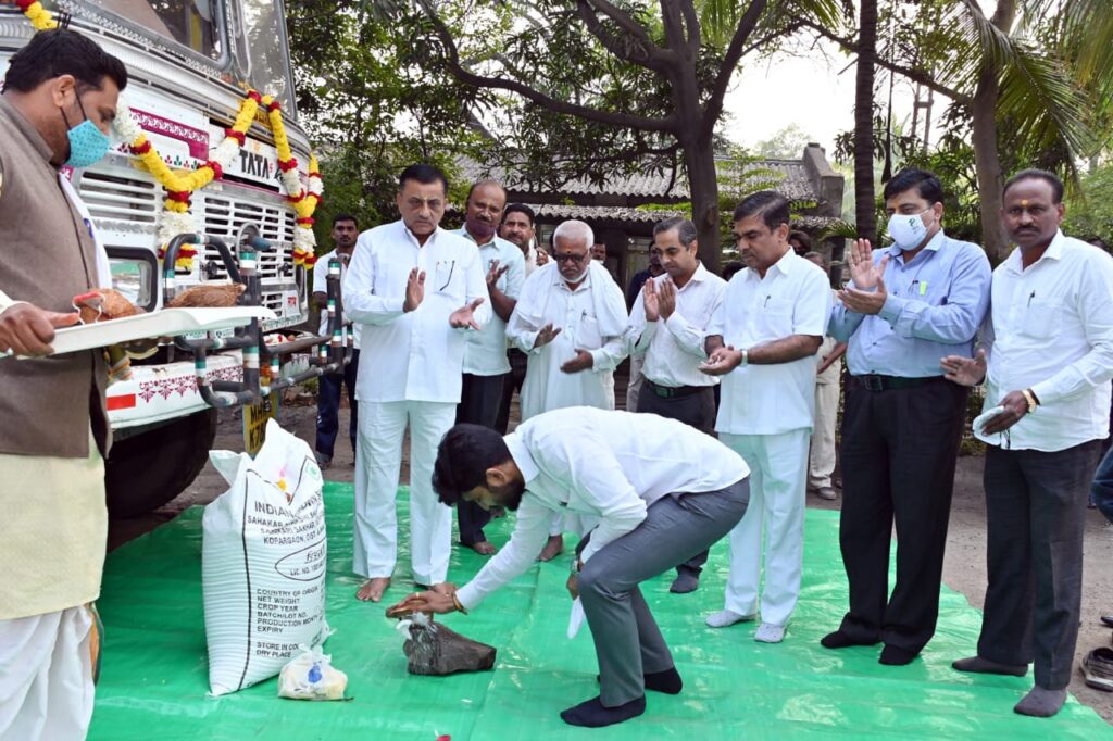 सहकारमहर्षी शंकरराव कोल्हे सहकारी साखर कारखान्यांच्या कच्च्या साखर निर्यातीच्या पहिल्या साखर पोत्याचे विधीवत पुजन तज्ञ संचालक व जिल्हा सहकारी बँकेचे संचालक विवेक कोल्हे यांच्या हस्ते झाले. याप्रसंगी उपाध्यक्ष आप्पासाहेब दवंगे, कार्यकारी संचालक बाजीराव जी. सुतार, एच. आर. मॅनेजर प्रदीप गुरव, वाल्मीकराव भिंगारे, चिफ केमिस्ट विवेक शुकला, मुख्य लेखापाल एस. एन. पवार, उपमुख्य लेखापाल प्रविण टेमगर, साखर गोदाम प्रमुख भास्करराव बेलोटे, बाळासाहेब रूपनर उर्फ हुंडेकरी, व्यापारी राजेंद्र शिंगी, संरक्षण अधिकारी रमेश डांगे, आदि खातेप्रमुख, उप खातेप्रमुख, कामगार उपस्थित होते. श्री. विवेक कोल्हे याप्रसंगी बोलतांना म्हणाले की, सहकारमहर्षी शंकरराव कोल्हे सहकारी साखर कारखान्याने माजीमंत्री शंकरराव कोल्हे यांच्या नेतृत्वाखाली अत्यंत अडचणीवर मात करत उस उत्पादक सभासद शेतक-यांच्या हितासाठी सातत्याने कार्यरत आहे. कारखान्यांचे अध्यक्ष बिपीनदादा कोल्हे यांच्या मार्गदर्शनांखाली साखर उत्पादनात गुणवत्तेला विशेष महत्त्व देऊन त्यांचे व सर्व संचालक मंडळाच्या सहकार्याने चालु गळीत हंगामात उत्पादित होणा-या साखरेपैकी ५ लाख क्विंटल कच्च्या साखर निर्यातीचा करार करण्यात आला असुन त्याच्या पहिल्या पोत्याचे पुजन आपल्या हस्ते झाले ही बाब कौतुकास्पद आहे. साखरेबरोबरच उपपदार्थ निर्मीतीतुन तसेच उसाच्या रसापासून थेट इथेनॉल उत्पादन करून सहकारमहर्षी शंकरराव कोल्हे साखर कारखान्याने देशात सर्वप्रथम नांवलौकीक मिळविला आहे असेही ते म्हणाले. शेवटी उपाध्यक्ष आप्पासाहेब दवंगे यांनी आभार मानले. सहकारमहर्षी शंकरराव कोल्हे सहकारी साखर कारखान्यांच्या कच्च्या साखर निर्यातीच्या पहिल्या साखर पोत्याचे विधीवत पुजन तज्ञ संचालक विवेक कोल्हे यांच्या हस्ते झाले. याप्रसंगी उपाध्यक्ष आप्पासाहेब दवगे, कार्यकारी संचालक बाजीराव जी. सुतार, एच. आर. मॅनेजर प्रदीप गुरव, वाल्मीकराव भिंगारे आदि उपस्थित होते.