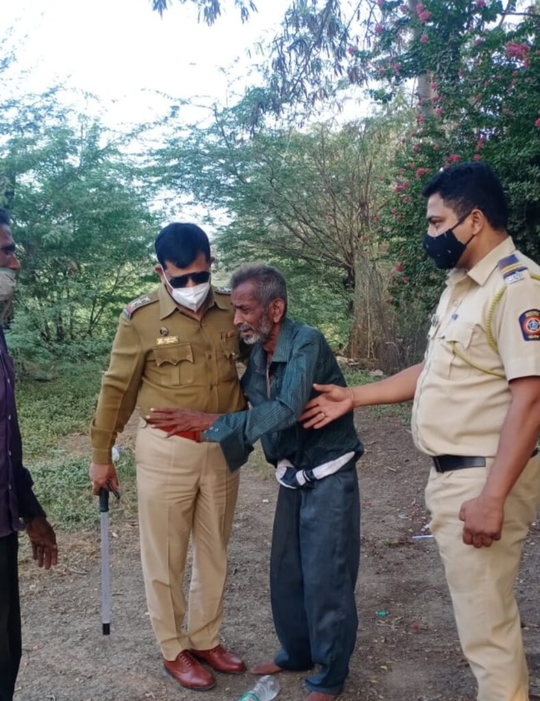 सविस्तर वृत्त असे की, येवला नाका याठिकाणी एक वृद्ध व अंध व्यक्ती आहे ती व्यक्ती उपाशी आहे ही माहिती समजताच कोपरगाव शहर पोलीस स्टेशनचे कर्तव्यदक्ष पोलीस निरीक्षक वासुदेव देसले साहेब यांनी आपल्या सहकारी यांना घेऊन कोणत्याही क्षणाचा विलंब न करता घटनास्थळी दाखल झाले व त्या वृद्ध व्यक्तीचे विचारपूस केली असता असे लक्षात आले की ती व्यक्ती अंध व काही दिवसापासून उपाशी आहे तेव्हा दिसलं साहेब यांनी त्या व्यक्तीला स्वतःच्या गाडीत घेऊन कोपरगाव शहर पोलीस स्टेशन मध्ये घेऊन आले त्या वृद्ध व्यक्तीला पाणी जेवण तसेच बँकेट दिले व त्या वृद्ध व्यक्तीच्या घरचा शोध घेण्यास सुरात केली त्या वृद्ध व्यक्तीचे कोणी नसून एक मुलगी गजानन नगर येथे राहत आहे हे समजल्यावर त्या मुलींची व वडिलांची भेट घालून दिली तेव्हा मनिषा सापकाळ मुलीने हरवलेल्या वडील मिळताच आनंद व्यक्त केला व तिने पोलीस निरीक्षक वासुदेव देसले साहेब यांचे आभार मानले व एक गौरव उद्गार काढले देसले साहेब यांच्या रूपाने आम्हाला देव माणूसच भेटला आहे.