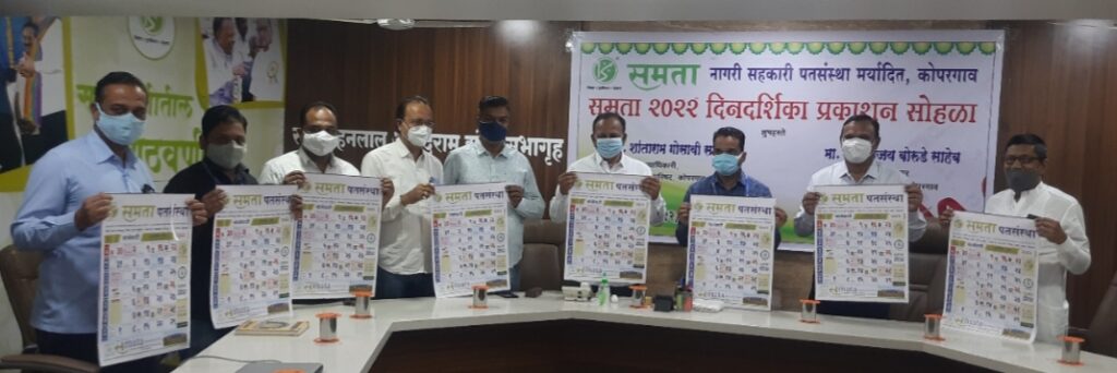 समता नागरी सहकारी पतसंस्थेच्या सन २०२२ च्या समता दिनदर्शिकेचा प्रकाशन सोहळा १३ डिसेंबर २०२१ रोजी स्व.मोहनलाल आनंदराम झंवर सभागृहात करण्यात आले. प्रसंगी ते बोलत होते. तर प्रकाशन सोहळ्याचे अध्यक्षस्थान तहसिलदार श्री विजय बोरुडे यांनी भूषविले.अध्यक्षीय मनोगत व्यक्त करताना म्हणाले की. कोपरगाव तालुक्यातून जाणाऱ्या समृद्धी महामार्गाच्या माध्यमातून कोपरगावातील व्यवसायाला चालना देण्यासाठी विशेष प्रयत्न करणार असून भविष्याच्यादृष्टीने शहारा बरोबरच ग्रामीण भागातील व्यावसायिक समृद्ध कसे होतील यासाठी लवकरच समृद्धी महामार्गाचे अधिकारी आणि व्यापाऱ्यांची बैठक आयोजित करण्याचे नियोजन केले जाईल तसेच तरुण व्यापारी व्यावसायिकांना एक दिशा देणारा हा प्रकल्प ठरणार असून कोपरगाव शहराबरोबरच तालुक्यातील व्यापाऱ्यांना समता पतसंस्था व व्यापारी महासंघाच्या माध्यमातून संधी उपलब्ध करून देणार आहोत. तसेच त्यांनी समताच्या पुढील वाटचालीस शुभेच्छा दिल्या तर कोपरगाव तालुका व्यापारी महासंघाचे कार्याध्यक्ष श्री सुधीर डागा यांनी व्यापारी महासंघाच्यावतीने मनोगत व्यक्त करत शहरातील व्यापाऱ्यांच्या समस्यांवर प्रकाश टाकला.प्रकाशन सोहळ्याच्या प्रमुख पाहुण्यांचे स्वागत आणि कार्यक्रमाचे प्रास्ताविक संस्थेचे चेअरमन ओमप्रकाश दादाप्पा तथा काका कोयटे यांनी केले. ते म्हणाले की,दरवर्षी समता दिनदर्शिकेचे प्रकाशन राज्यातील ५ जिल्ह्यातील १ लाख घरात जाऊन पोहचते त्यामुळे समता दिनदर्शिका ही सभासद, हितचिंतकापर्यंत संस्थेच्या योजना,उपक्रम पोहचविण्याचे महत्वाचे काम करत असते आणि संस्थेचे सभासदाशी असलेले नाते अधिक घट्ट करत असते.प्रारंभी तहसिलदार श्री विजय बोरुडे, मुख्याधिकारी श्री शांताराम गोसावी यांनी समता नागरी सहकारी पतसंस्थेचे मुख्य कार्यालयाला भेट देऊन पतसंस्थेच्या दैनंदिन कामकाजाची माहिती जाणून घेत फॉरेन्सिक ऑडीट कंट्रोल रूम,ऑनलाईन समता रिकव्हरी पॅटर्न, सोनेतारण विभागाची कार्यप्रणाली समजून घेत कौतुक केले तर समताच्या सहकार उद्योग मंदिराला भेट देत सहकार मंदिरातील अगरबत्ती ,कापूर,कापसाची वाती, वस्त्र निर्मिती अशा विविध सुरु असलेल्या उत्पादनाविषयी माहिती जाणून घेतली.यावेळी तहसीलदार श्री विजय बोरुडे यांचा सत्कार संस्थेचे चेअरमन काका कोयटे, मुख्याधिकारी श्री शांताराम गोसावी यांचा सत्कार संचालक श्री गुलशन होडे, श्री किरण शिरोडे आणि उपमुख्याधिकारी श्री ज्ञानेश्वर चाकणे यांचा सत्कार व्यापारी महासंघाचे सचिव श्री प्रदीप साखरे यांच्या हस्ते समता महिला बचत गटाच्या महिलांनी कलाकुसर करून अगरबत्ती व कापूर एकत्र बांधून तयार केलेला गुच्छ देऊन सन्मान