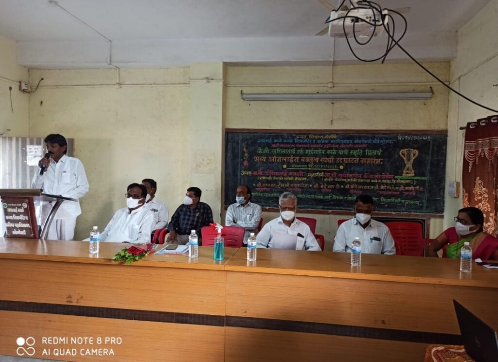 स्व. सौ.सुशीलामाई काळे यांच्या स्मृतिप्रीत्यर्थ आयोजित ऑनलाईन वक्तृत्व स्पर्धेच्या उद्घाटन प्रसंगी बोलतांनाकर्मवीर शंकरराव काळे कारखान्याचे व्हा. चेअरमन सुधाकर रोहोम व मान्यवर.