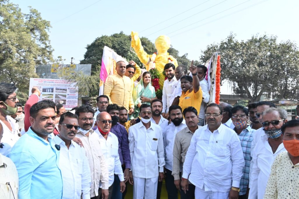 लोकशाहीर आण्णाभाऊ साठे यांच्यापुर्णाकृती पुतळ्याचे साईबाबा कॉर्नर कोपरगांव येथे जिल्हा बँकेचे संचालक विवेक कोल्हे, भाजपाच्या प्रदेश सचिव स्नेहलता कोल्हे यांनी स्वागत करत विधीवत पुजन केले.