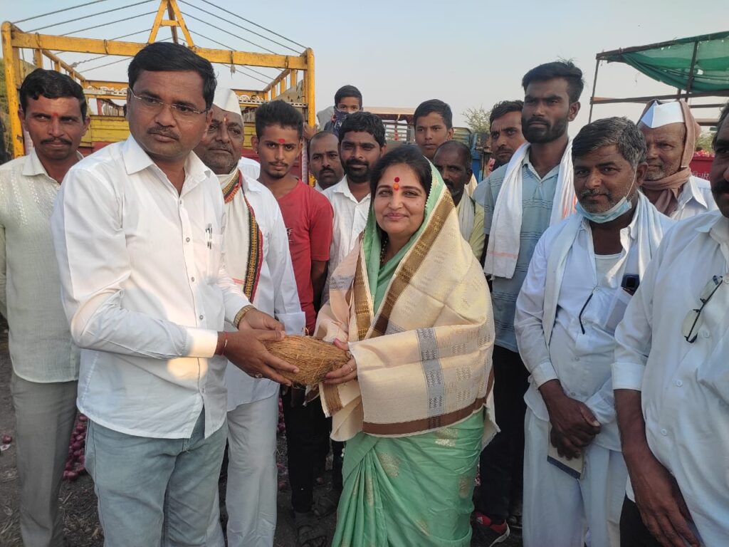 कोपरगांव तालुका कृषी उत्पन्न बाजार समिती अंतर्गत तालुक्यातील तिळवणी शिरसगांव येथे उपकेंद्र सुरू करण्यांत आले असुन येथे शेतक-यांनी मोठया प्रमाणांत कांदा विक्रीसाठी आणला असुन भाजपाच्या प्रदेश सचिव स्नेहलता कोल्हे यांनी या बाजार उपकेंद्रास नुकतीच भेट देवुन पाहणी करत शेतक-यांशी संवाद साधला, त्यांच्या अडी अडचणी जाणुन घेतल्या.