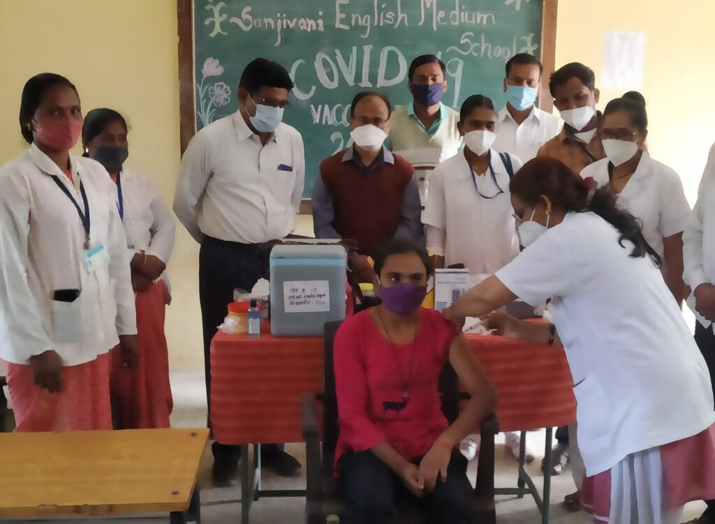 संजीवनी इंग्लिश मिडीयम स्कुलच्या इयत्ता नववी व दहावीच्या ११६ विद्यार्थ्यांचे कोरोना लसीकरण डॉ. एस. के. गायकवाड, परिचारीका एच. बी. परदेशी, ए. आर. गोधडे यांच्या हस्ते पुर्ण करण्यात आले.