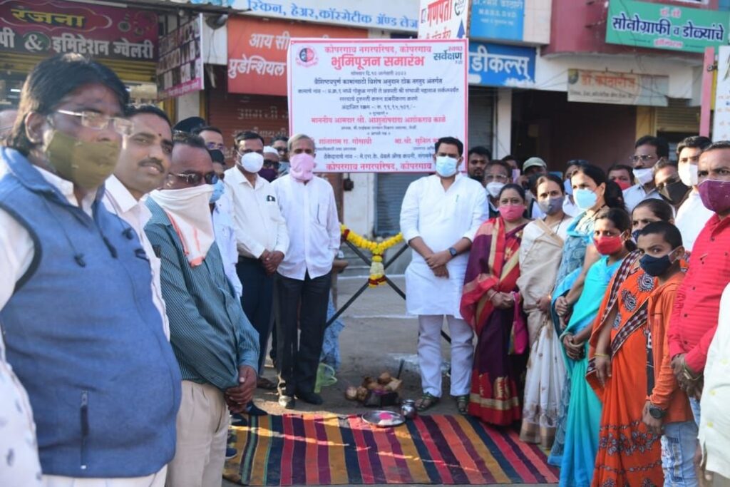 कोपरगाव येथे रस्त्यांच्या कामाचे भूमिपूजन प्रसंगी आ. आशुतोष काळे व मान्यवर.