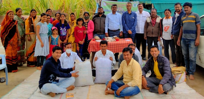 अखिल भारतीय तेलबिया संशोधन केंद्र जुनागड, तेलबिया संशोधन केंद्र जळगांव, व कोपरगांव तालुका कृषि विभागाच्या सहकार्याने तालुका कृषि अधिकारी मनोज सोनवणे यांच्या हस्ते शेतक-यांना उन्हाळी भुईमुग निविष्ठांचे यावेळी वाटप करण्यांत आले. मुर्शतपुर येथील प्रगतशिल शेतकरी रामदास शिंदे यांच्या वस्तीवर हा कार्यक्रम घेण्यांत आला. अध्यक्षस्थानी तेलबिया संशोधन केंद्र जळगांव येथील कृषि विस्तार प्रवर्तक पोपटराव खंडागळे होते.प्रारंभी कृषि अधिकारी अविनाश चंदन, कृषि पर्ववेक्षक राजेंद्र तुंभारे यांनी उपस्थितांचे स्वागत केले. तालुका कृषि अधिकारी मनोज सोनवणे यांनी उन्हाळी सोयाबीन, हरभरा, कांदा, गहु लागवड व उत्पादन याविषयी माहिती दिली. श्री. पोपटराव खंडागळे अध्यक्षपदावरून बोलतांना म्हणाले की, शेतक-याचे प्रति एकरी उत्पादन वाढले पाहिजे. पीक बदल व शाश्वत मृदा संवर्धनाने काय फायदा होतो तसेच महात्मा फुले कृषि विद्यापीठ अंतर्गत फुले भारती उन्हाळी भूईमुग वाणाची प्रत्येकी दहा गुंठे क्षेत्रातील बीज प्रक्रिया लागवड, पाणी, खत व्यवस्थापन त्याचप्रमाणे गादीवाफयावर दीड फुट सरी घेवुन ३ सेंटीमिटर खोल व दोन झाडांमध्ये १० सेंटीमिटर अंतर लागवड याबाबत त्यांनी मार्गदर्शन केले. फुले भारती उन्हाळी भुईमुगावर आठ वर्षे संशोधन करण्यांत आले त्यातुन इतर पिकापेक्षा यात ५३ टक्के तेल व ३१ टकके उत्पादन वाढ प्रयोगाअंती निरीक्षण नोंदले गेले. ही जात रोग प्रतिकारक आहे. शेतक-यांने सतत प्रयोगशील असावे, माहिती तंत्रज्ञानाने जग जवळ आल्याने आधुनिकतेची कास धरत शेतक-यांने विविध पिकाबाबत असणा-या शंकांचे तज्ञांकडुन वेळच्यावेळी निरसन करावे. पीकावरील कीड व रोग प्राथमिक अवस्थेत असतांनाच त्याबाबत वेळीच उपाययोजना केल्यास भविष्यातील नुकसानीची तीव्रता कमी करता येते. पीक वाढीचा मुलमंत्र प्रत्येकाने आत्मसात केल्यास तीळगुळाचा आनंद द्विगुणित होतो असे ते शेवटी म्हणाले. काही शेतकऱ्यांनी शाश्वत उत्पादन वाढ कशा पद्धतीने मिळाले याचे अनुभव सांगितले. यावेळी प्रगतशिल शेतकरी सर्वश्री हरिभाऊ शिंदे, सुनिल दवंगे, कैलास शिंदे, सचिन शिंदे, साहेबराव उगले, जालिंदर शिंदे, आप्पासाहेब शिंदे, सुधाकर शिंदे, दिलीप शिंदे, संजय उगले, गणेश शिंदे, काका शिंदे यांच्या शंकांचे निरसन करण्यांत आले. शेवटी कृषी सहायक संगिता सोळसे यांनी आभार मानले.अखिल भारतीय तेलबिया संशोधन केंद्र जुनागड, तेलबिया संशोधन केंद्र जळगाव व कोपरगांव तालुका कृषि विभागाच्या सहकार्याने तालुका कृषि अधिकारी मनोज सोनवणे यांच्या हस्ते मुर्शतपुर शिवारातील शेतक-यांना उन्हाळी भुईमुग निविष्ठांचे वाटप करण्यांत आले.