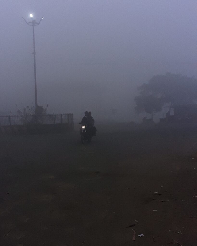गेल्या आठ दिवसापासून हवेत प्रचंड गारठा निर्माण झाला असुन सोमवारी सकाळी साडेसहा ते नऊ वाजेपर्यंत कोपरगाव शहरासह तालुक्याचा संपूर्ण परिसर धुक्याने वेढला गेला होता, वाहनचालकांना पाच मिनीटाच्या अंतरावरील कुठलेही वाहने दिसत नव्हती त्यामुळे त्यांना अत्यंत धिम्या गतीने वाहने चालवावी लागत होती. चालु रब्बी हंगामात कोपरगांव तालुक्यात मोठया प्रमाणांत कांदा पिकाबरोबरच गहु, हरभरा, भाजीपाला, फळे, उस आदि पिकांची लागवड केली आहे. या धुक्यामुळे बुरशी, तांबेरा, करपा, भुरी, टिक्का, मावा, तुडतुडे रोगाची भिती वाढली आहे. परिणामी शेतकरी चिंताग्रस्त आहे. धुक्यामुळे औद्योगिक उत्पादन कारखानदार कामगार कामावर उशीरा आले. शालेय विद्यार्थ्यांना कसरत करावी लागली. शहरालगत नगर मनमाड महामार्ग तसेच नागपुर मुंबई द्रुतगती मार्गावर व शिर्डीकडुन ये जा करणारी वाहने अत्यंत संथगतीने चालु होती. ग्रामिण भागात मस्तपैकी शेकोटया पेटल्या होत्या. थंडीसाठी चहा, कॉफी, दुधाचा स्वाद आर्वजून घेतला जात होता, आबालवृद्ध गरमाईचे ब्लँकेट ओढुन होते, तर चिमणी पाखरं, छोटी कुत्र्यांची पिल्ले दुपारी वाजेपर्यंत रस्त्यावर फिरकली नाहीत. सुर्यदर्शन झाल्यावर धुक्याचे प्रमाण कमी झाले. धुकाच्या चादरीत उसतोडणी कामगार व त्यांचे कोयते मात्र सुरूच होते. लहान मुला मुलींचे हाल झाले. १०० वर्षांच्या इतिहासात जगात २०२१ हे वर्ष सर्वाधीक उष्ण म्हणुन नोंदले गेले. त्यामुळे कुठे मोसमी, बिगरमोसमी, गारपीट, वादळी पाउस होवुन पर्यावरणीय संतुलन बिघडले आहे. त्यामुळे रुग्णांची संख्याही वाढु लागली आहे. त्यातच कोरोनाची महामारी पिच्छा सोडायला तयार नाही. सर्वसामान्यासह मध्यमवर्गीयांचे आर्थीक अंदाजपत्रक कोलमडुन पडले आहे. लॉकडाउनमुळे हाताला काम नाही. शेतीवर येणारी संकटे काही थांबायला तयार नाहीत. हे धुके जैविक बुरशीसाठी प्रतिकुल आहे. बुरशीजन्य बरोबरच अन्य आजार वाढण्याचा मोठा धोका आहे त्यासाठी एम ४५ किवा सिक्सर, साफ, स्कोर त्याचप्रमाणे मेटारायझम किंवा बिवेरीया जैविक बुरशीनाशके एका एकरासाठी पीक परिस्थिती पाहुन २०० ते २५० मिली घेवुन पाण्यात सायंकाळी ४ ते ६ दरम्यान फवारणी करावी. ही फवारणी केल्यानंतर ८ ते १५ दिवसाच्या अंतराने रासायनिक किटकनाशके वापरावी असा सल्ला जळगाव तेलबिया संशोधन केंद्राचे कृषीतज्ञ पोपटराव खंडागळे यांनी दिला आहे. सोमवारी सकाळी कोपरगांव शहर व तालुक्याचा संपूर्ण परिसर धुक्याने वेढला.