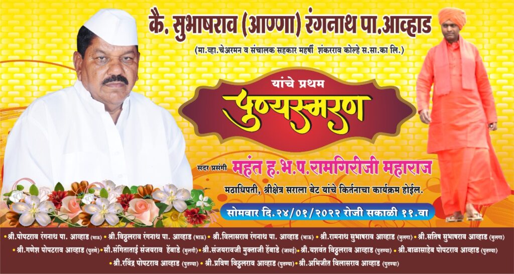 सदर प्रसंगी महंत रामगिरी महाराज मठाधिपती, श्रीक्षेत्र सरला बेट यांचे कीर्तनाचा कार्यक्रम होईल.सदर कार्यक्रम सर्वांनी उपस्थित राहावे.
