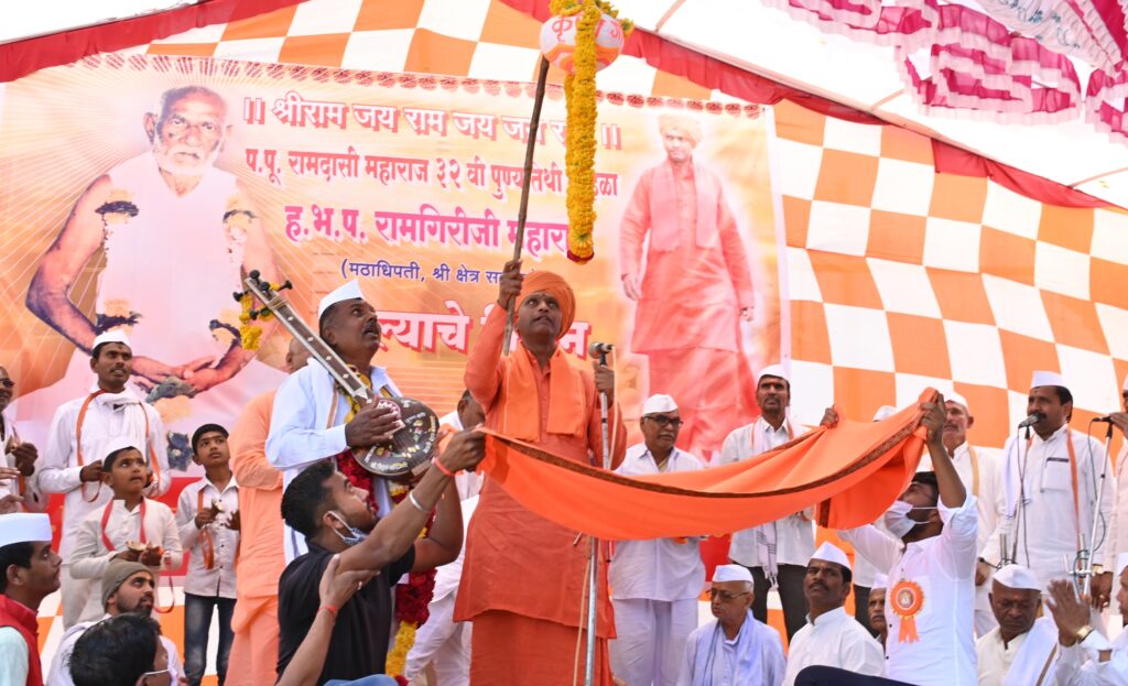 महंत रामगिरी महाराज पुढे म्हणाले की, कोकमठाण पंचक्रोशीचा परिसर रामदासीबाबांच्या अखंड तपसाधनेच्या ऊर्जेने सिद्ध झालेला आहे. गेल्या ३२ वर्षापासून येथील भक्तमंडळ त्यानिमीत्त धार्मिक कार्यक्रमाचे आयोजन करून त्याचा परमानंद भक्तांना अखंडपणे देत असतात., दक्षिण काशी गंगा गोदावरीच्या घाटावर ब्रह्मलीन संत रामदासी बाबा यांनी तपसाधना करून या पंचक्रोशीतील असंख्य जुन्या मंदिरांचा जीर्णोद्धार केला. सोप्या भाषेत गीता संस्कारासह मुलांना योग कलेबरोबरच अध्यात्माचे शिक्षण दिले. भारत भूमीचा आध्यात्मिक पाया संत महंत, ऋषीमुनी, तपस्वी, आदी विभूतींनी घातला. उपस्थित भाविकांना बुंदी आणि मसालेभात महाप्रसाद देण्यात आला.