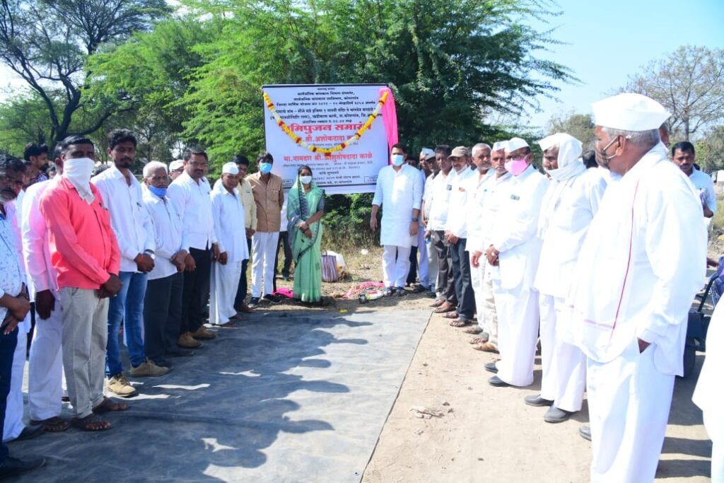 कोपरगाव विधानसभा मतदार संघातील राहाता तालुक्यातील सडे-शिंगवे शिवरस्त्याचे ना. आशुतोष काळे यांच्या पाठपुराव्यातून भाग्य उजळले आहे. यापूर्वी जिल्हा परिषदेकडे असणाऱ्या या रस्त्याची ना. आशुतोष काळे यांच्या विशेष प्रयत्नातून दर्जोन्नती होऊन या मार्गाला प्रमुख जिल्हा मार्ग दर्जा देण्यात आला आहे. या रस्त्याला ना. आशुतोष काळे यांच्या निधीतून १० लाख रुपये निधी मिळाला आहे. या निधीतून मारुती मंदिर ते चांगदेव बारहाते घर रस्ता (सडे-शिंगवे शिवरस्ता) मजबुतीकरण कामाचे भूमिपूजन नुकतेच श्री साईबाबा संस्थानच्या विश्वस्त मंडळाचे अध्यक्ष ना. आशुतोष काळे यांच्या हस्ते संपन्न झाले आहे. तसेच यावेळी सडे येथे २४ लक्ष रुपये निधीतून करण्यात येणाऱ्या रावसाहेब बारहाते घर ते युवराज देठे घर रस्ता मजबुतीकरण कामाचे देखील भूमिपूजन ना. आशुतोष काळे यांच्या हस्ते करण्यात आले.