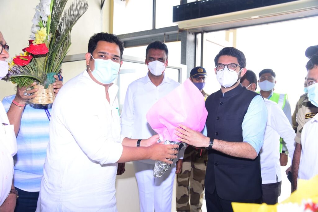 पर्यटन, पर्यावरण,राजशिष्टाचार मंत्री आदित्य ठाकरे यांचे स्वागत करतांना ना. आशुतोष काळे.
