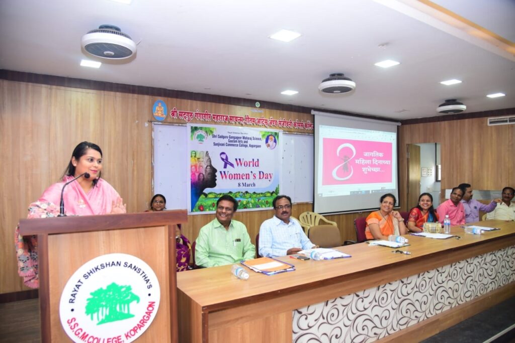 राजमाता जिजाऊ, माता सावित्री, माता रमाई अशा अनेक कर्तुत्ववान महिलांच्या प्रेरणेतून प्रत्येक क्षेत्रात आज महिला पुरुषांच्या खांद्याला खांदा लावून कार्य करीत आहेत. ज्याच्याकडे गुणवत्ता आहे तो पुढे जातो त्यावेळी मुलगा किंवा मुलगी हे पाहिले जात नाही. अनेक क्षेत्रात महिला आघाडीवर आहेत. असं एकही क्षेत्र नाही की त्या ठिकाणी महिला कार्यरत नाहीत. त्यामुळे आपण एक महिला आहोत हा विचार मनातून काढून टाका आणि महिला कुठेही कमी नाहीत हे जगाला दाखवून द्या असा मौलिक सल्ला अहमदनगर जिल्हा सहकारी बँकेच्या माजी संचालिका सौ. चैतालीताई काळे यांनी दिला कोपरगाव येथील रयत शिक्षण संस्थेच्या एस.एस.जी.एम. महाविद्यालयात जागतिक महिला दिन कार्यक्रम व स्व.सौ. सुशिलामाई काळे यांच्या पुण्यस्मरणार्थ आयोजित करण्यात आलेल्या आंतरमहाविद्यालयीन राज्यस्तरीय वक्तृत्व स्पर्धेचे बक्षिस वितरण सौ. चैतालीताई काळे यांच्या प्रमुख उपस्थितीत पार पडले याप्रसंगी त्या बोलत होत्या.