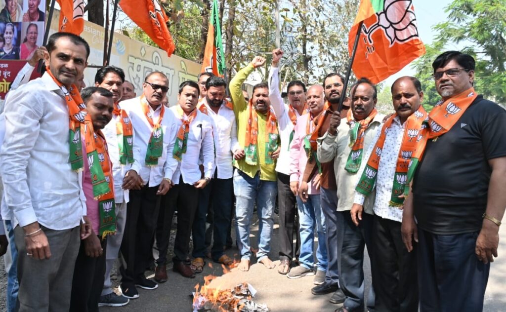 राज्यात राष्ट्रवादी काँग्रेस आणि काँग्रेसच्या तालावर मुख्यमंत्री उध्दव ठाकरे यांनी तत्कालीन मुख्यमंत्री, विरोधी पक्षनेते देवेंद्र फडणवीस यांच्या विरोधात पोलीस नोटीस जारी करून दडपशाही करण्याचा जो प्रकार केला आहे तो निंदनीय व निषेधार्ह असल्याचे प्रतिपादन भाजपाच्या प्रदेश सचिव स्नेहलता कोल्हे यांनी पत्रकारांशी बोलतांना केले. लोकशाहीच्या तत्वांची पायमल्ली होत आहे.कोपरगांव शहर व तालुका भारतीय जनता पक्षाच्यावतीने रविवारी पक्ष कार्यालयासमोर राज्याचे विरोधी पक्षनेते देवेंद्र फडणवीस यांच्या विरोधात महा विकास आघाडी शासनाने पोलीस चौकशीची नोटीस काढली त्याची होळी केली. प्रारंभी शहराध्यक्ष दत्ता काले म्हणाले की, राज्यात अनेक भ्रष्टाचारी मंत्री महाविकास आघाडी शासनात सामील आहेत, त्यातील काही तुरुंगाची हवा खात आहे तर काही आत जाण्यांच्या तयारीत आहे. देशात पंतप्रधान नरेंद्र मोदी यांचा बोलबाला असुन त्यांनी उत्तरप्रदेश, गोवा, उत्तराखंड, आणि माणिपुर चार विधानसभा निवडणुकीत भाजपाला चारीमुंड्या चीत करणाऱ्यांच्या मनसुब्यावर बुलडोझर फिरविला पण अजुनही शेखचिल्लीचे मनोरे उभे करून २०२४ च्या लोकसभा निवडणुकचे सत्ता स्वप्न पहात आहेत., त्यांना भाजपचे राष्ट्रीय नेतृत्व आगामी प्रत्येक निवडणुकीत नक्कीच धूळ चारणार आहे. विरोधीपक्षनेते देवेंद्र फडणवीस यांची मुंबई महानगरपालिका निवडणुकीत अनेकांना धडकी भरली आहे तर महाविकास आघाडीच्या भ्रष्टाचाराची व खोट्या केसेसची विधिमंडळात पोलखोल केल्याने अनेकांचा जळफळाट झाला आहे. खरेपणाने वागणाऱ्या फडणवीसांना पोलीस नोटीस बजावुन त्यांच्यावर एक प्रकारचे दडपण आणण्यांचा प्रयत्न सत्ताधारी करीत आहे, त्याचा आम्ही धिक्कार करून तीव्र शब्दात निषेध नोंदवितो असे ते म्हणiले. या प्रसंगी सर्वश्री विजय आढाव, युवा मोर्चा शहराध्यक्ष अविनाश पाठक, विनोद राक्षे, राजेंद्र बागूल, खालीकभाई कुरेशी, रवींद्र रोहमारे, महावीर दगडे, दिपक राऊत, जयेश बडवे, .सतीश रानोडे, किरण सुपेकर, दादाभाऊ नाईकवाडे, निलेश बोऱ्हाडे, शंकर बिऱ्हाडे, .चंद्रकांत वाघमारे, विजय चव्हाणके, राजेंद्र गायकवाड, प्रसाद पऱ्हे, .फकिरमहमंद पहिलवान, अनिल जाधव, रवी शेलार, .संतोष नेरे यांच्यासह विविध सेलचे पदाधिकारी, कार्यकर्ते उपस्थित होते. शेवटी भाजप युवा मोर्चाचे शहराध्यक्ष अविनाश पाठक यांनी आभार मानले.