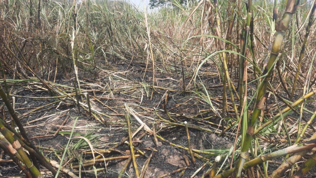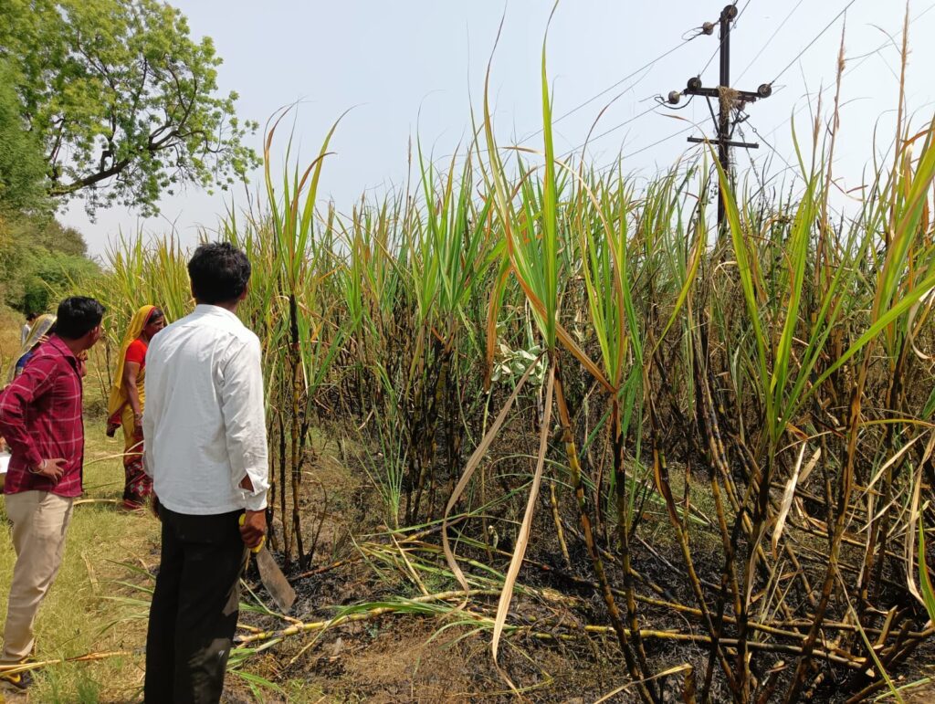शेतकरी बापुराव सिताराम वक्ते यांच्या मालकीच्या सर्वे नंबर ९\३ मध्ये तीन एकर उसाचे पीक घेतले आहे शेजारून जाणाऱ्या विजेच्या तारा एकमेकांना घासुन स्पार्किंग होऊन ऊसाला आग लागली ही घटना बुधवारी दुपारी १२.३० सुमारास घडली आहे