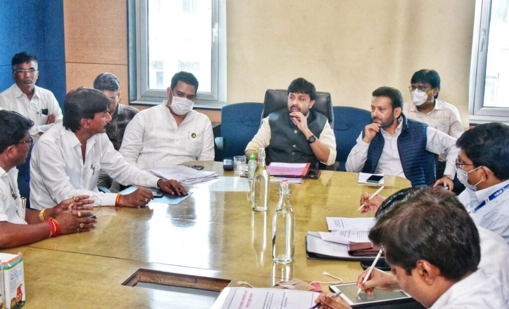 समृद्धी महामार्गामुळे निर्माण झालेल्या अडचणी सोडविण्यासाठी सार्वजनिक बांधकाम,स्वच्छता व पाणीपुरवठा राज्यमंत्री ना. संजय बनसोडे यांच्या समवेत चर्चा करतांना ना. आशुतोष काळे.