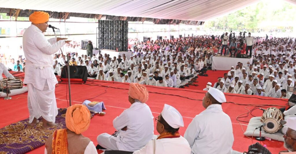 संजीवनी उद्योग समुहाचे संस्थापक माजीमंत्री शंकरराव कोल्हे यांच्या दशक्रियाविधीनिमीत्त संजीवनी अभियांत्रीकी महाविद्यालयाच्या मैदानावर श्रध्दांजली प्रवचन देतांना ह.भ.प.उध्दव महाराज मंडलिक.