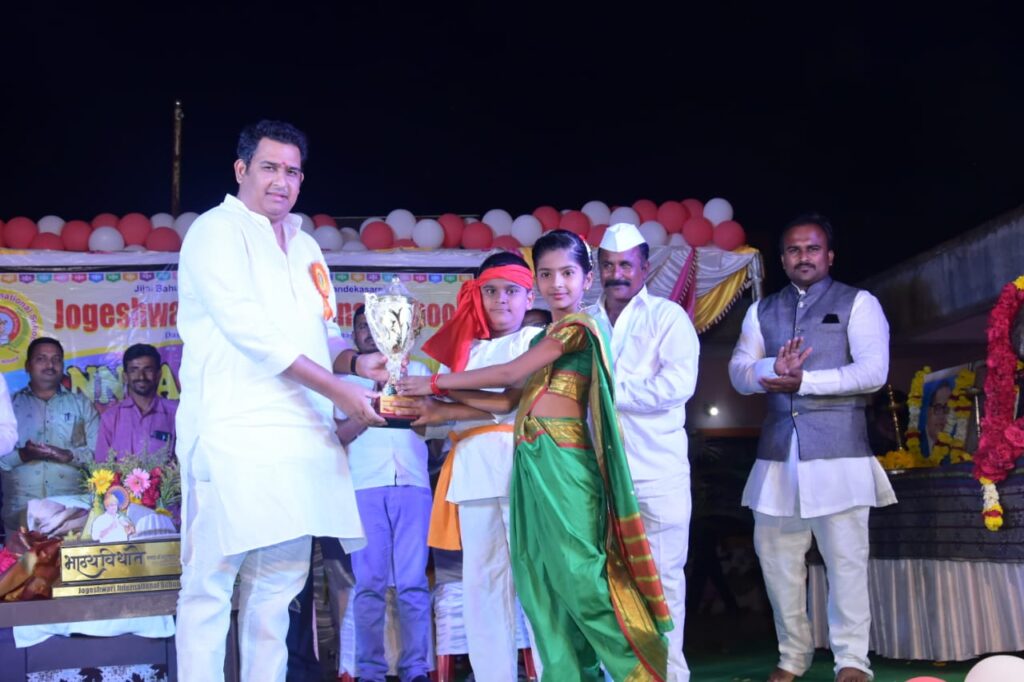 जोगेश्वरी इंटरनॅशल स्कुल आयोजित मैदानी खेळांचा स्पर्धेचे बक्षिस वितरण ना.आशुतोष काळे यांच्या हस्ते पार पडले त्यानंतर विद्यार्थांनी सांस्कृतीक कार्यक्रमाच्या माध्यमातुन आपल्या कलागुणांचे भव्यदिव्य प्रदर्शन केले यात संस्थेचे संचालक सागर होन व त्यांच्या सुविद्य पत्नी पल्लवी होन यांच्या ‘सब से पहले लुंगा अपने बच्चों का नाम ” या गीताला प्रेक्षकांनी अक्षरशा डोक्यावर घेतले.