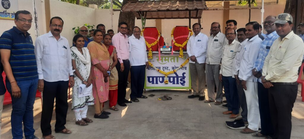 समता चॅरिटेबल ट्रस्टच्या वतीने समता पाणपोई चे उद्घाटन समता पतसंस्थेचे जेष्ठ संचालक श्री गुलाबचंद अग्रवाल यांच्या हस्ते करण्यात आले.प्रसंगी समता चॅरिटेबल ट्रस्ट चे अध्यक्ष ओमप्रकाश दादाप्पा तथा काका कोयटे,संचालक श्री गुलशन होडे, व्यापारी श्री दीपक अग्रवाल,समता पतसंस्थेचे जनरल मॅनेजर श्री सचिन भट्टड, कोपरगाव आगारचे माजी वाहक श्री विष्णुपंत गायकवाड यांची प्रमुख उपस्थिती होती.कोपरगाव आगारच्या आगार प्रमुख सौ उज्वला कुटे, वरिष्ठ लिपिक श्री औदुंबर गादी, श्री मिलिंद कोपरे,वाहतूक नियंत्रक श्री आशिष कांबळे, श्री नवनाथ बढे,श्री दिलीप आहेर,आगार लेखागार सौ सुनीता गवळी यांची ही उपस्थिती होती.
