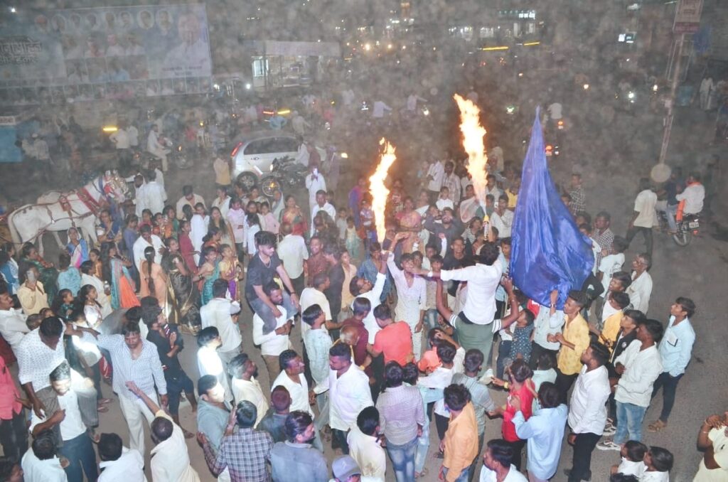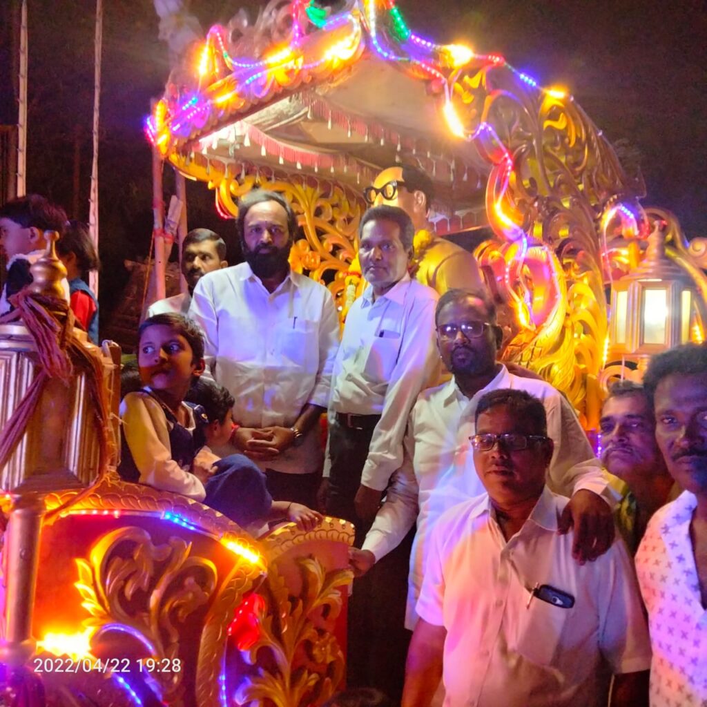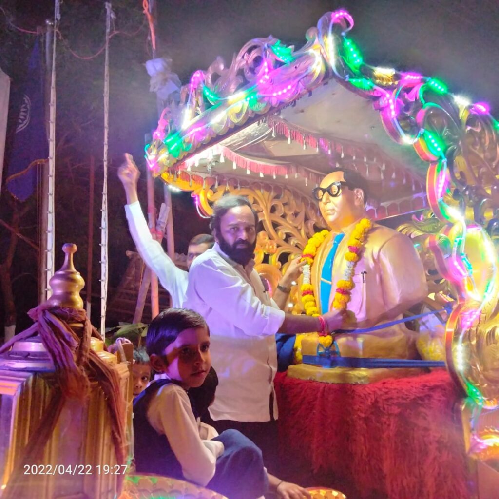 या वेळी मा. नगराध्यक्ष्य मंगेश पाटिल यांच्या हस्ते डॉ.बाबासाहेब आंबेडकर यांच्या प्रतिमेचे पूजन करुण मिरवनुकिला सुरुवात करण्यात आली