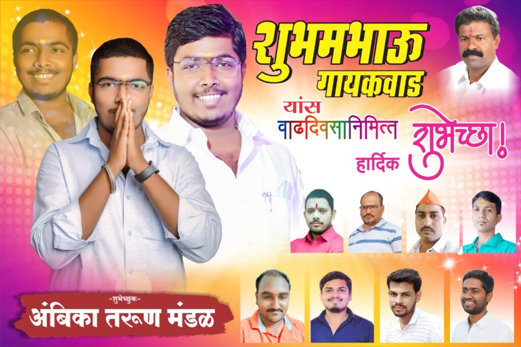 कोपरगाव शहरातील सामाजिक कार्यकर्ते मा श्री शुभमभाऊ विनायकराव गायकवाड याना अंबिका तरुण मंडळाच्या वतीने वाढदिवसाच्या हार्दिक शुभेच्छा