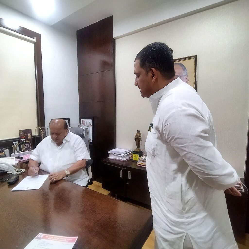 तहसील कार्यालय व पंचायत समितीवर इमारतीवर सोलर प्लॅन्ट बसवावे याबाबत ना. हसन मुश्रीफ यांना निवेदन देतांना ना. आशुतोष काळे.