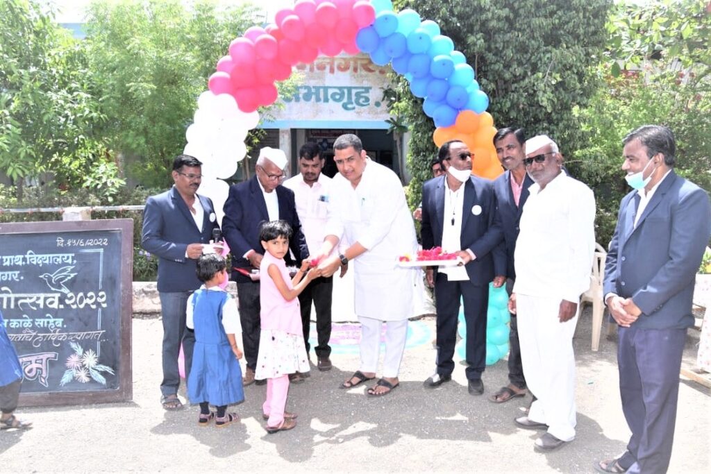 श्री छत्रपती संभाजी प्राथमिक विद्यालयाच्या शैक्षणिक वर्ष २०२२/२३ च्या विद्यार्थ्यांचे स्वागत करतांना ना. आशुतोष काळे