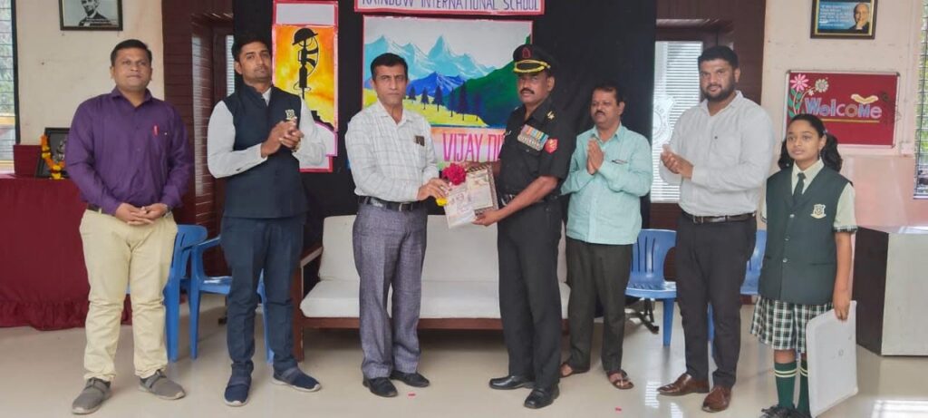 शिक्षणमहर्षी लहानुभाऊ नागरे स्थापित रेन्बो इंटरनॅशनल स्कूल मध्ये वर्षभरातील सर्वच सण-उत्सव, दिनविशेष उत्साहात आणि नाविण्यपूर्णतेने साजरे केले जातात. दि .२६ जुलै हा दिवस संपूर्ण भारतभर कारगिल विजय दिवस म्हणून साजरा केला जातो . संस्थापक अण्णा तथा लहानुभाऊ नागरे यांना सैनिकांविषयी विशेष आदर व निष्ठा होती . देशावर त्यांचे विशेष प्रेम होते . अण्णांच्या विचारधारेवर आधारीत रेन्बो इंटरनॅशनल स्कूल मध्ये कारगिल विजय दिवस देशभक्तीने भारावलेल्या वातावरणात साजरा करण्यात आला .या प्रसंगी कारगिल युद्धात महत्वाची भूमिका बजावणारे बाबतरा गावाचे सुपुत्र निवृत्त ले . मेजर राजेंद्र धुमाळ प्रमुख पाहुणे म्हणून उपस्थित होते . त्यांच्या समवेत ज्येष्ठ नागरीकांनी ही हजेरी लावली . या प्रसंगी अण्णांच्या विचारामुळेच माझ्या जीवनाला दिशा मिळाल्याचे सांगत देशसेवत असतानाचे अनुभव त्यांनी विद्यार्थ्यांना सांगितले . सदर कार्यक्रमाचे प्रास्ताविक अंजली सिंग यांनी मांडले तर दत्ता डोखे यांनी परिचय व सत्काराची सुत्रे हाताळली . मंथन घोपल व आरव पराड या विद्यार्थ्यांनी भाषणे सादर केली . राहूल कोळगे यांनी कारगिल युद्धाचा इतिवृत्तांत आपल्या भाषणातून हुबेहूब नजरे समोर ठेवला . संगीत शिक्षक श्यामसुंदर गव्हाणे सरांच्या मार्गदर्शनाखाली इयत्ता पाचवीच्या विद्यार्थ्यांनी भारतमातेचे गौरव गीत सादर केले . प्राचार्य सुरेश शिंदे सरांनी आभाराची सुत्रे हाती घेत आपल्या वक्तव्यातून विद्यार्थ्यांच्या मनात देशभक्तीची ज्योत प्रज्वलीत केली . देशभक्तीने ओतप्रोत भरलेल्या या कार्यक्रमाचे सूत्रसंचालन जिक्रा दारुवाला सह नंदिनी वक्ते यांनी केले .विश्वभारती रूरल एज्युकेशन सोसायटीचे अध्यक्ष मा .कांतीलालजी आग्रवाल, सचिव – संजयजी नागरे, विश्वस्त – मनोजशेठ आग्रवाल, आनंदजी दगडे , वनिताताई नागरे , कार्यकारी संचालक आकाश नागरे ,
