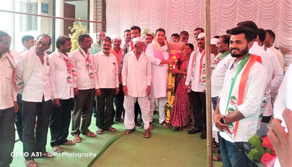 राष्ट्रवादी काँग्रेस पक्षात प्रवेश केलेल्या अंजनापूर येथील अनेक कार्यकर्त्यांचे स्वागत करतांना ना. आशुतोषदादा काळे.