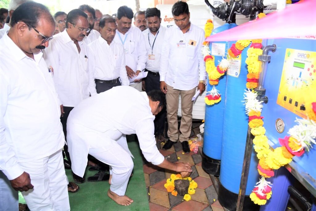 कृषी उत्पन्न बाजार समिती परिसरात सुरु करण्यात आलेल्या आर.ओ.वॉटर फिल्टर प्लँट व वॉटर कुलरचे उदघाटन करतांना ना. आशुतोष काळे.