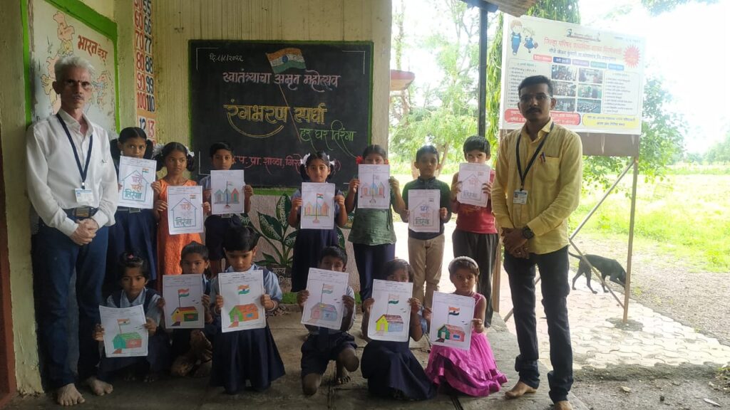 संपूर्ण देशभर स्वातंत्र्याचा अमृत महोत्सवा निमित्त विविध उपक्रम राबवले जात आहे .रंगकामाचे प्रात्यक्षिक मुलांना दाखविन्यात आले.चित्रात रंग भरताना विद्यार्थ्यांचा आनंद ओसंडून वाहत होता.यास्पर्धेसाठी उपशिक्षक सुदाम साळुंके ,उपशिक्षक अनुज ढुमणे ,मुख्याध्यापिका श्रीमती प्रियंका जोशी यांनी मेहनत घेतली.
