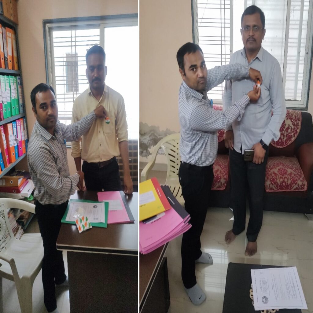 वरील अभियानाची जनजागृती करत आज दिनांक १०.०८.२०२२ पासून महारुद्रा फाऊंडेशन (हेल्पिंग हॅण्डस् ) – जेऊर कुंभारी तर्फे “हर घर तिरंगा” अभियान ला प्रत्यक्षात सुरूवात करण्यात आली. आज हि सुरुवात महारुद्रा फाऊंडेशन चे कोषागार किरण देशमुख (CA) यांनी विक्रीकर विभाग, अहमदनगर येथील अधिकाऱ्यांना NATIONAL FLAG BEDGES देऊन या अभियानाला प्रत्यक्षात सुरूवात केली. आपल्या महारुद्रा फाऊंडेशन तर्फे कोपरगाव शहर, जेऊर कुंभारी, कोकामठाण, माहेगांव देशमुख, येवला, अहमदनगर (आयकर विभाग व विक्रीकर विभाग) या ठिकाणी तिरंगा ध्वज (पॉकेट पिन) मोफत वाटण्यात येतील. हे अभियान पूर्णत्वाकडे नेण्यासाठी महारुद्रा फाऊंडेशन चे सर्व पदाधिकारी व सभासद जबाबदारीने कार्य करत आहेत.