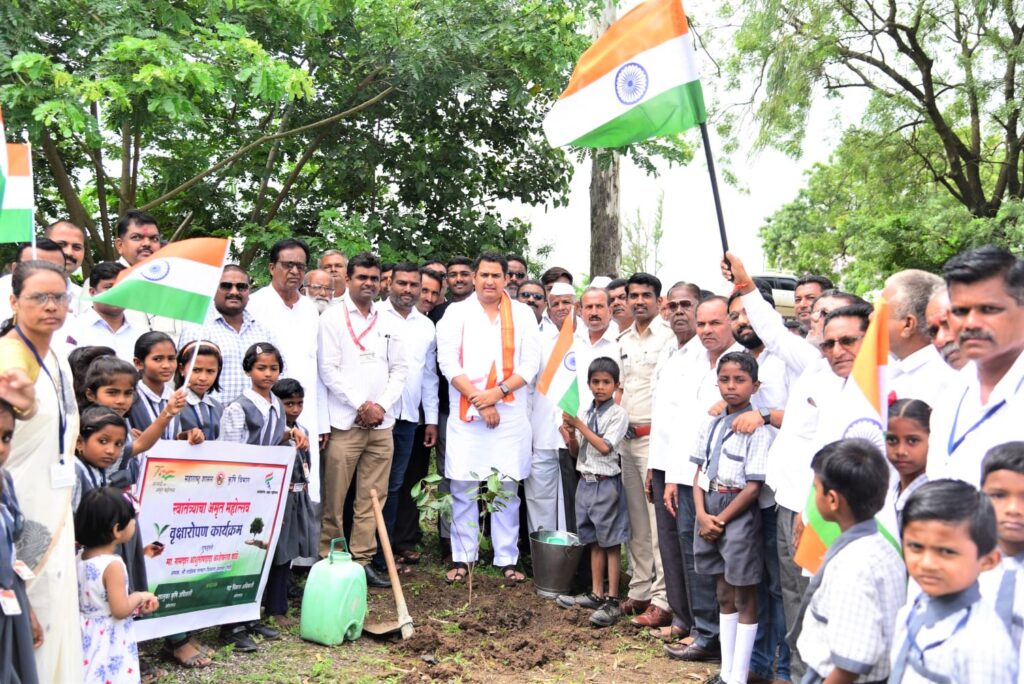 देशाच्या अमृत महोत्सवी स्वातंत्र्य दिनानिमित कृषी विभाग व सामाजिक वनीकरण विभागाच्या वतीने गावोगावी वृक्षारोपण व वृक्ष संवर्धन मोहीम हाती घेण्यात आली असून कोपरगाव तालुक्यातील माहेगाव देशमुख येथे श्री साईबाबा संस्थानच्या विश्वस्त मंडळाचे अध्यक्ष ना. आशुतोष काळे यांच्या हस्ते वृक्षारोपण करण्यात आले आहे.याप्रसंगी बोलतांना ना. आशुतोष काळे म्हणाले की, आपण देशाचा अमृत महोत्सवी स्वातंत्र्य दिन मोठ्या उत्साहात विविध सामाजिक उपक्रम राबवून साजरा करीत आहोत. यामध्ये देशातील सर्व नागरिकांनी उत्स्फुर्तपणे सहभाग घेतला आहे. हि अतिशय अभिमानाची बाब आहे. आज संपूर्ण विश्वापुढे पर्यावरणाचा बिघडलेला समतोल सावरण्याचे मोठे आवाहन असून त्यावर वृक्षारोपण करून त्यांचे संवर्धन करणे हि काळाची गरज बनली आहे. त्याचबरोबर मागील काही वर्षापासून प्लास्टिकचा वाढलेला वापरामुळे पर्यावरणाची मोठ्या प्रमाणात हानी होत आहे. याची सर्वांनी गांभीर्याने दखल घेणे गरजेचे आहे. त्यासाठी सुरु असलेल्या पावसाळ्यात व्यापक स्वरुपात वृक्ष लागवड करून या वृक्षांचे संवर्धन करणे काळाची गरज बनली आहे. त्याचबरोबर बेसुमार वृक्षतोड थांबवून वनराईचे अस्तित्व टिकविण्यासाठी सर्वांनी सामुहिक प्रयत्न करावे व दैनंदिन जीवनात प्लास्टिकचा वापर कमी करून पर्यावरणाची होणारी अपरिमित हानी टाळावी असे आवाहन केले.