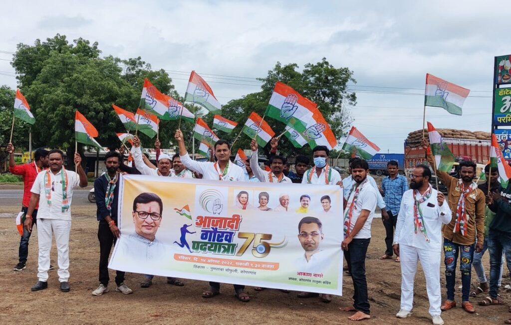 अखिल भारतीय काँग्रेस कमिटीच्या सूचनेनुसार भारतीय स्वातंत्र्याच्या अमृत महोत्सवी वर्षानिमित्त काँग्रेस पक्षाच्या वतीने आजादी गौरव पदयात्रा देशभर काढण्यात येत आहे. रविवार दि. १४ ऑगस्ट २०२२ रोजी कोपरगाव तालुका काँग्रेस पक्षाच्या वतीने तालुक्यात पदयात्रा काढून देशाच्या स्वातंत्र्य लढ्यतील काँग्रेस पक्षाच्या संघर्ष आणि योगदानाबद्दल जनजागृती करण्यात आली.