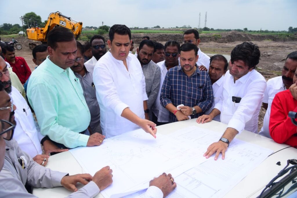 ५ नं. साठवण तलाव कामाची माहिती घेतांना ना. आशुतोष काळे.