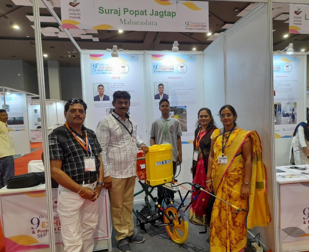 नवी दिल्ली येथे ९ वे राष्ट्रीय विज्ञान प्रदर्शन, प्रगती मैदानावर १४ ते १६ सप्टेंबर २२ या कालावधीमध्ये पार पडले. या प्रदर्शनीत यंदा ९ व्या इन्स्पायर पुरस्कारासाठी देशभरातून सुमारे ५५६ विद्यार्थ्यांच्या विज्ञान प्रकल्पांची निवड केंद्र शासनाच्या संस्थेद्वारे करण्यात आली होती.संपूर्ण देशातून ६.५३ लाख विद्यार्थ्यांनी त्यांच्या नावीन्यपूर्ण कल्पना आणि प्रयोग यांची मांडणी केली होती त्यातून हे सर्व बालवैज्ञानिक केंद्र शासनाच्या विज्ञान व तंत्रज्ञान विभागाच्या वरिष्ठ सनदी अधिकारी व एन.आय.एफ. चे तज्ञ मार्गदर्शक यांच्या मार्फत निवड करण्यात आली होती.यात महाराष्ट्र राज्याचे नेतृत्व ३१ विद्यार्थ्यांनी केले. त्यात अहमदनगर जिल्ह्यातून,तसेच रयत शिक्षण संस्थेच्या,उत्तर विभागाच्या सर्व शाखांमधून एकमेव कर्मवीर शंकररावजी काळे माध्यमिक विद्यालय, करंजी,तालुका कोपरगाव या ग्रामीण भागातील सर्व साधारण परिस्थितीत शिक्षण घेत असलेला,अल्पभूधारक शेतकरी पोपट सोपान जगताप यांचे पुत्र सुरज जगताप यांने या विद्यालयाचे कलाशिक्षक संदीप दिलीप चव्हाण यांच्या मार्गदर्शनाने या प्रदर्शनी मध्ये महाराष्ट्राचे नेतृत्व केले.