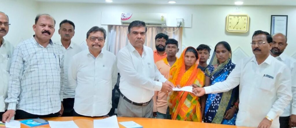 संजीवनी उद्योग समुहाचे अध्यक्ष बिपीनदादा कोल्हे, भाजपाच्या प्रदेश सचिव सौ स्नेहलताताई कोल्हे व कारखान्यांचे अध्यक्ष विवेकभैय्या कोल्हे यांच्या मार्गदर्शनाखाली सहकारमहर्षी शंकरराव कोल्हे सहकारी साखर कारखान्याने उसतोडणी कामगारांसाठी न्यु इंडिया इंशुरन्स कंपनीकडुन गन्ना कामगार अपघात विमा योजना उतरवलेली आहे त्यात २०२०.२१ गळीत हंगामात उसतोडणी कामगारांचा रस्ते अपघातात मृत्यु झाला होता त्याच्या वारसांना तीन लाख रूपयांचा धनादेश उपाध्यक्ष रमेश घोडेराव व कार्यकारी संचालक बाजीराव जी. सुतार यांच्या हस्ते नुकताच प्रदान करण्यांत आला. याबाबतची माहिती अशी की, सहकारमहर्षी शंकरराव कोल्हे साखर कारखाना कार्यस्थळावर वैजापुर विभागातुन बैलगाडीच्या सहाय्याने विलास जिजाउ पवार हे उस वाहतुक करत असतांना त्यांच्या बैलगाडीस ट्रक टँकरने लौकी शिवारात संस्कृती हॉटेल जवळ धडक दिली त्यात त्यांचा व बैलाचा जागीच मृत्यु झाला होता. याप्रसंगी कारखान्यांचे अध्यक्ष युवानेते विवेकभैय्या कोल्हे यांनी संबंधीत मृतांच्या वारसाकडुन आवश्यक त्या सर्व कागदपत्रांची पुर्तता करण्याच्या सुचना दिल्या व अमृत संजीवनी शुगरकेन प्रा लि. या संस्थेच्या माध्यमांतुन न्यु इंडिया इंशुरन्स कंपनी अहमदनगर व कोपरगांव कार्यालयाकडे त्याचा पाठपुरावा केला व तीन लाख रूपयांचा विमा क्लेम मंजुर करून घेतला. सदर विमा रक्कमेचा धनादेश मयत उसतोडणी कामगार कै. विलास जिभाऊ पवार यांच्या वारस आई ताराबाई जिभाउ पवार व पत्नी श्रीमती योगिता विलास पवार यांना कारखाना कार्यस्थळावर नुकताच प्रदान करण्यांत आला. याप्रसंगी साखर सरव्यवस्थापक शिवाजीराव दिवटे, केन मॅनेजर जी. बी. शिंदे, उप मुख्य शेतकी अधिकारी चंद्रकांत वल्टे, सोपानराव निकम, शैलेश मुजगुले, केशवराव होन, अनिल सोनवणे, महेंद्र बच्छाव आदि उपस्थित होते. सहकारमहर्षी शंकरराव कोल्हे साखर कारखाना व न्यु इंडिया इंशुरन्स कंपनीच्यावतीने विलास जिभाऊ पवार या मयत उस तोडणी कामगारांच्या वारस आई ताराबाई जिभाऊ पवार व पत्नी श्रीमती योगिता विलास पवार यांना तीन लाख रूपये विम्याचा धनादेश उपाध्यक्ष रमेश घोडेराव व कार्यकारी संचालक बाजीराव जी. सुतार यांच्या हस्ते नुकताच प्रदान करण्यांत आला. याप्रसंगी साखर सरव्यवस्थापक शिवाजीराव दिवटे आदि उपस्थित होते.
