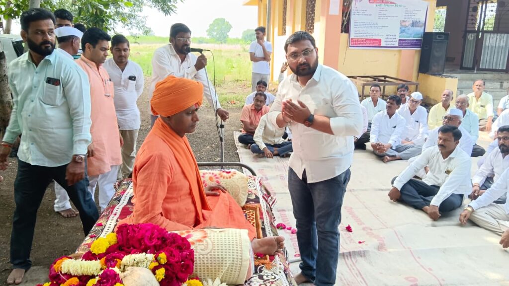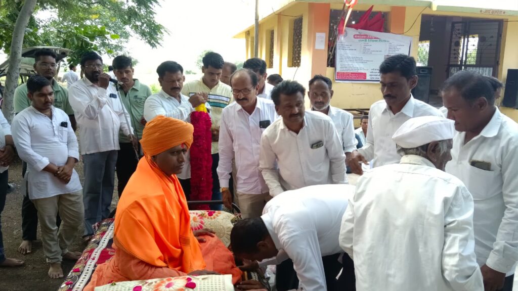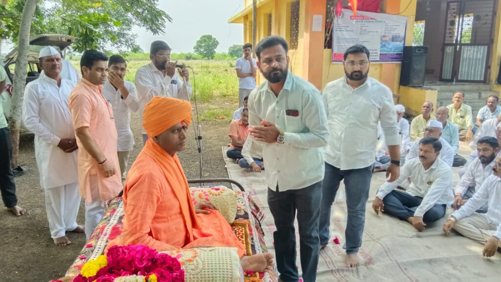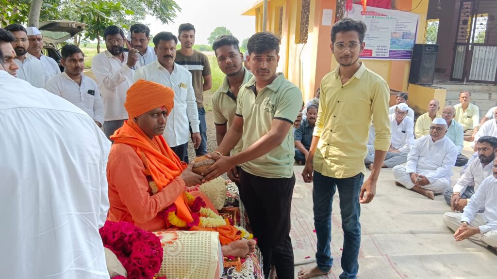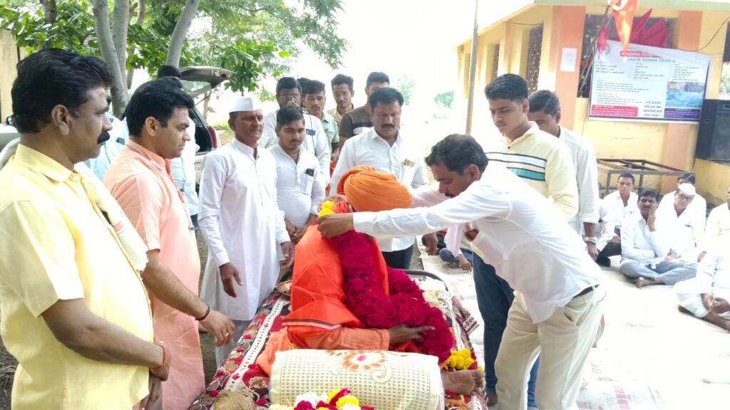 त्यानंतर ग्रामस्थांच्या वतीने महंत रामगीरी जी महाराज यांचे पुजन करण्यात आले.