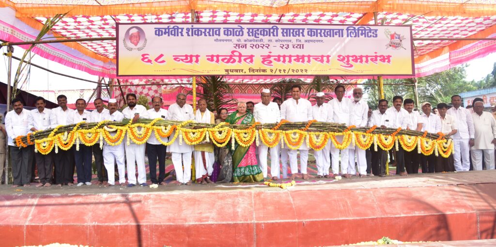 काळेमागील तीन गळीत हंगामापासून जिल्ह्यात सर्वाधिक दर देण्याची परंपरा याहीवर्षी कायम ठेवून २०२२-२३ च्या गळीत हंगामात गाळपाला येणाऱ्या ऊसाला पहिला हफ्ता २५००/- रुपये देणार असल्याचे कर्मवीर शंकरराव काळे सहकारी साखर कारखान्याचे चेअरमन आ.आशुतोष काळे यांनी जाहीर केले आहे. कर्मवीर शंकरराव काळे सहकारी साखर कारखान्याच्या सन २०२२-२३ या वर्षाच्या ६८ व्या गळीत हंगामाचा शुभारंभ कारखान्याचे जेष्ठ संचालक, मार्गदर्शक माजी आमदार अशोकराव काळे व त्यांच्या सुविद्य पत्नी प्रियदर्शनी इंदिरा महिला मंडळाच्या अध्यक्षा सौ. पुष्पाताई काळे यांच्या हस्ते विधिवत पूजन करून व गव्हाणीत ऊसाची मोळी टाकून करण्यात आला. याप्रसंगी आपल्या अध्यक्षीय भाषणात आ. आशुतोष काळे बोलत होते.यावेळी बोलतांना आ. आशुतोष काळे म्हणाले की, इस्माने (ISMA) चालू हंगामात देशामध्ये ४१० लाख मे.टन साखर उत्पादन होईल असा अंदाज व्यक्त करून त्यापैकी इथेनॉल उत्पादनासाठी ४५ लाख टन साखरेचा वापर होऊन साखरेचे निव्वळ उत्पादन ३६५ लाख मे.टन होण्याचा अंदाज व्यक्त केला आहे. राज्यात एकूण १४.८७ लाख हेक्टर ऊस क्षेत्र गाळपासाठी उपलब्ध असून मागील हंगामात १३७ लाख मे. टन साखर उत्पादन झाले असून चालू हंगामात देखील १३८ लाख मेट्रिक टन साखर उत्पादन होईल असा साखर आयुक्तालयाचा अंदाज आहे. मात्र मागील तीन महिने ऊस पिकाच्या शेतात पाणी साचून राहिल्यामुळे जमिनीतून अन्नद्रव्य शोषणाचे ऊसाच्या मुळाचे कार्य मंदावले आहे. अति पाऊस होऊन देखील उसाची अपेक्षित वाढ झालेली नाही. कार्यक्षेत्रात जास्त प्रमाणात असलेल्या को -२६५ या ऊसावर इतर ऊस जातीच्या तुलनेत जास्त प्रमाणात तांबेरा रोगाचा प्रादुर्भाव झालेला आहे. मंत्री समितीने १५ ऑक्टोबर पासून गाळप हंगाम सुरू करण्याचा निर्णय घेतला असला तरी सर्वत्र पडणारा पाऊस, दिवाळी सण त्यामुळे ऊस तोडणी कामगार उपलब्ध झाले नाही आदी कारणांमुळे आजमितिला ४० ते ५० साखर कारखान्यांचे गाळप हंगाम सुरू झाले आहेत. परतीच्या पावसाने सोयाबीन, मका पिकांचे मोठे नुकसान झाले असून ऊस पिकांचे नुकसान झालेले दिसत नसले तरी टनेज घटण्याचा अंदाज आहे. शेतात आजही पाणी असल्यामुळे ऊसाने भरलेली वाहने शेतातून बाहेर काढणे अवघड आहे त्यामुळे हंगाम सुरू करण्याचा निर्णय घेण्यात आला असला तरी ऊस शेतात पाणी असल्यामुळे ऊसामध्ये साखर कमी राहील व त्याचा विपरीत परिणाम साखर उताऱ्यावर होणार आहे. सुरुवातीला साखर उतारा कमी राहील त्यामुळे जिल्हा बँकेकडून पेमेंट साठी मिळणारे ड्रॉवल कमी राहतील या सर्व गोष्टींना सामोरे जाऊन येणाऱ्या प्रत्येक अडचणीवर मात करून हंगाम यशस्वी करू.कर्मवीर शंकररावजी काळे व माजी आमदार अशोकराव काळे यांनी आजवर ऊस उत्पाद