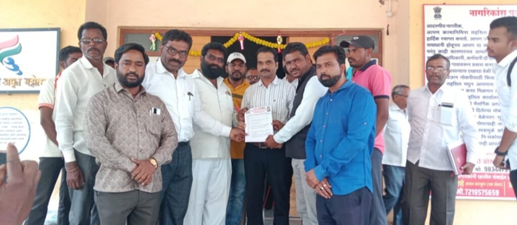 आज दिनांक १५ नोव्हेंबर रोजी सकाळी अकरा वाजता एकलव्य आदिवासी परिषद संघटना संस्थापक अध्यक्ष मंगेश औताडे यांच्या नेतृत्वाखाली बहुसंख्या आदिवासी बहुजन समाज बांधवांच्या गायरान जमीन प्रकरणासंदर्भात तहसीलदार विजयजी बोरुडे यांना निवेदन देण्यात आले