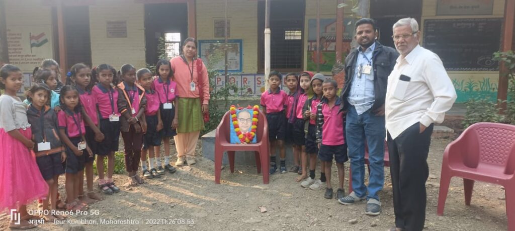 भारतीय संविधानाचे शिल्पकार डॉ.बाबासाहेब आंबेडकर यांच्या प्रतिमेचे पूजन शाळेचे मुख्याध्यापक नवनाथ सुर्यवंशी यांच्या हस्ते करण्यात आले.याप्रसंगी बालसभेचे आयोजन करण्यात आले होते. तसेच मुख्याध्यापक सुर्यवंशी यांनी विद्यार्थ्यांना संविधान दिन साजरा करण्याचा उद्देश व महत्व स्पष्ट करताना “आपल्या देशाच्या राज्यकारभारासाठी संविधान निर्माण करण्यात आले आहे. राज्यकारभार करताना लोकप्रतिनिधी संविधानातील नियमांचा आधार घेतात. त्यामुळे कोणावरही अन्याय होत नाही. संविधानात नागरिकांचे हक्क व कर्तव्येही सांगितली असल्याने नागरिकांनाही संविधानाचा उपयोग होतो.आपल्या देशाच्या राज्यकारभारासाठी लिखित संविधान तयार करण्यासाठी संविधान सभेची स्थापना करण्यात आली. डॉ. राजेंद्र प्रसाद हे या सभेचे अध्यक्ष होते. संविधानातील नियमांचा मसुदा तयार करण्यासाठी नेमण्यात आलेल्या मसुदा समितीचे अध्यक्ष डॉ. बाबासाहेब आंबेडकर हे होते. या मसुदा समितीने संविधानाला अंतिम रूप दिल्यावर २६ नोव्हेंबर १९४९ रोजी संविधान सभेने भारताचे संविधान स्वीकारले” याबाबत सविस्तर माहिती सांगितली.शाळेच्या शिक्षिका मनिषा शिंपी यांनी डॉ. बाबासाहेब आंबेडकर यांच्या जीवनचरित्राविषयी माहिती दिली. सदर प्रसंगी चांगदेव वक्ते सर व शाळा व्यवस्थापन समितीचे माजी अध्यक्ष शैलेश दळवी उपस्थित होते.