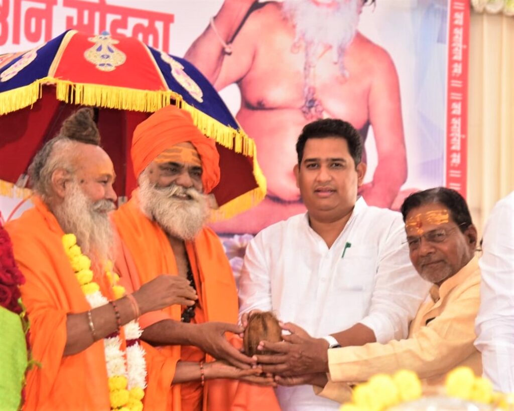 राष्ट्रसंत सदगुरु जनार्दन स्वामी (मौनगिरीजी) महाराज यांच्या ३३ व्या पुण्यतिथीनिमित्त संत महात्म्यांचे आशिर्वाद घेतांना आ. आशुतोष काळे.