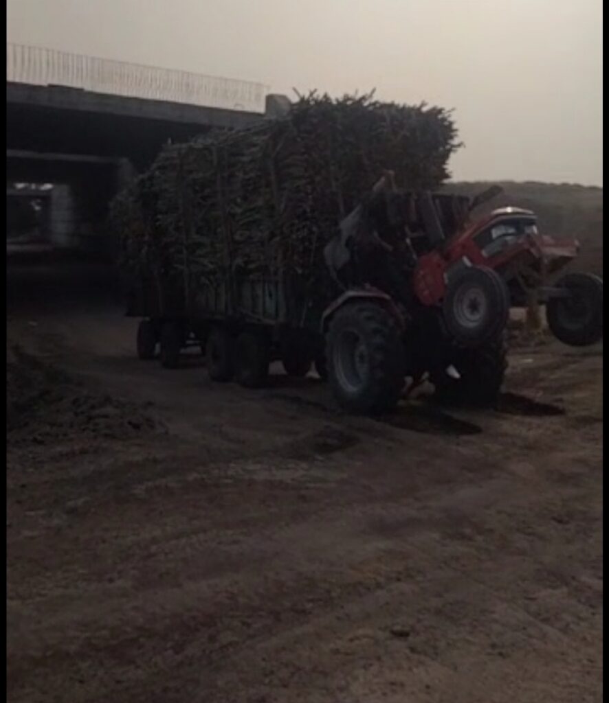 तेव्हा प्रसंग सावधान राखत माजी सरपंच यशवंत आव्हाड, शेतकरी किरण शिंदे यांनी जेसेबिच्या साह्यांने उसाने भरलेला ट्रक्टर
